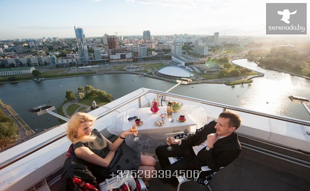 Закажите незабываемое романтическое свидание на крыше в самом центре Минска, и вашему взору откроются живописные панорамные виды на город. Влюбленные расположатся за уютным столиком в удобных креслах, а специальная оборудованная беседка не даст замерзнуть в плохую погоду. Атмосферу свидания идеально дополнят романтическое освещение и лирическая музыка. Мы возьмем на себя все организационные вопросы в этот особенный вечер, Вам останется лишь пригласить свою вторую половинку на свидание на крыше и наслаждаться великолепным вечером.