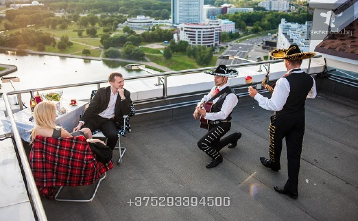 После согласования времени и даты в распоряжении гостей на 2 часа будет находиться уютная терраса откуда открываются живописные виды. C высоты птичьего полета Вы сможете наслаждаться красотой города, сидя в удобных креслах. На небольшом столике со свечами будет ожидать бутылка игристого напитка с бокалами, а позже подадут согревающий чай с шоколадными конфетами. Укрыться от вечерней прохлады Счастливчики смогут, завернувшись в теплые пледы. «Гвоздем» программы станет выступление музыканта мариачи с исполнением настоящей мексиканской серенады, в течении 20 минут он будет играть только для вас двоих.