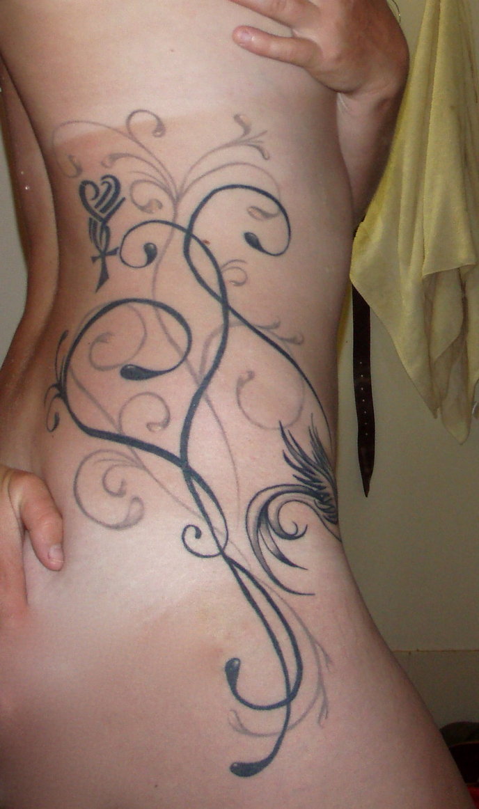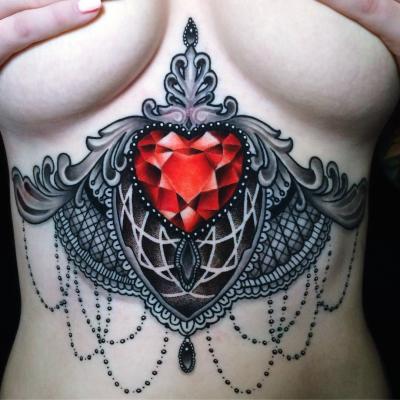 - татуировка на шрамах, перекрытие старой работы (цветная):