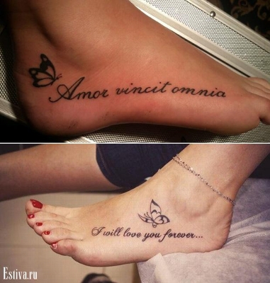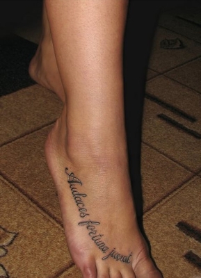 При слове татуировка мы чаще всего представляем себе изображение на теле в виде узоров, животных или символических объектов, хотя тенденция последних лет такова, что все большую и большую популярность приобретают татуировки надписи. Чаще всего встречаются следующие виды тату надписи: фразы на английском, фразы на латыни, фразы на испанском, крылатые выражения, имена. Сегодня, как и тысячелетия назад, люди наносят татуировки надписи, чтобы выразить свое отношение к чему-либо, помочь себе утвердиться в жизненных принципах, создать себе талисман. Татуировки надписи чаще всего предпочитают наносить молодые люди и девушки, увлекающиеся философией или желающие подчеркнуть свою индивидуальность. Помимо этого, татуировки надписи отражают стиль их владельца, его убеждения, гражданскую позицию или жизненное кредо, в зависимости от смысла и шрифта надписи. На самом деле татуировка надписи может быть выполнена различными шрифтами и стилями написания. Шрифтов для татуировки надписи существует огромное количество, есть общераспространенные, которые без труда можно скачать в интернете, есть редкие, а есть и дизайнерские, хранящиеся в авторских коллекциях мастеров-татуировщиков. Какой шрифт выбрать - решать Вам. Даже самая простая, с художественной точки зрения, татуировка может стать отражением индивидуальности, если Вы нанесете любимую фразу или высказывание. Если Вы хотите нанести крылатую фразу или изречение мудрецов, Вам сюда (каталог фраз).