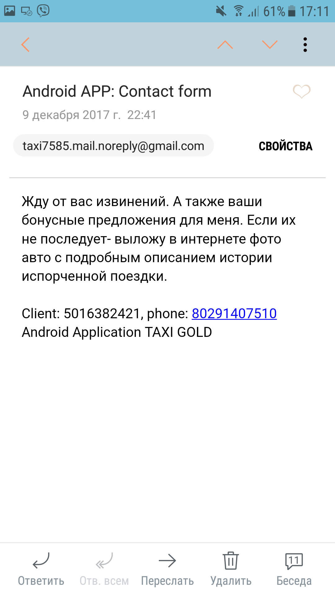 reanimator.by мы Получили вчера от вас обратную связь с претензиями. Во вложении первые два скрина . Из них видно что вы вымогаете бонусы за данный инцидент. К сожалению мы не работает с подобными клиентами, Поэтому вы были занесены в черный список наших клнентов. .также прилагают третий скрин нашего ответа вам с извинениями , которые мы принесли сразу же вам..