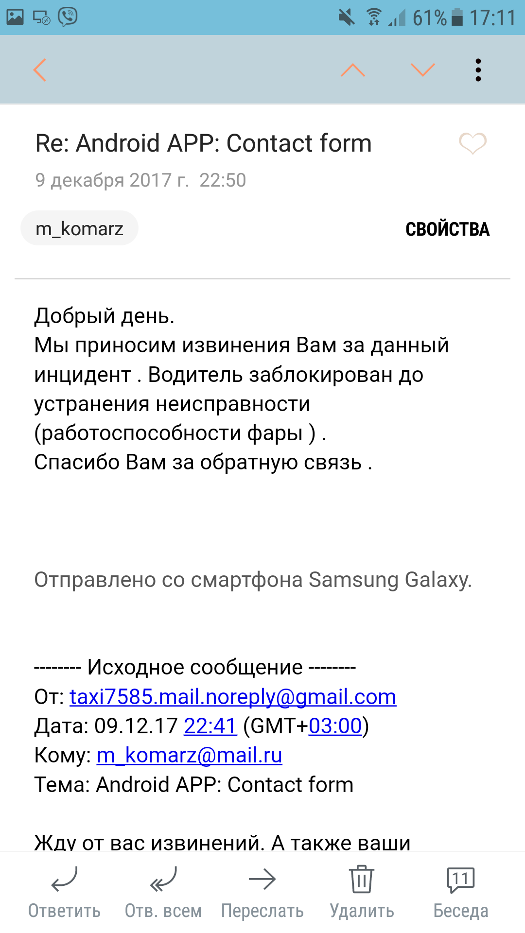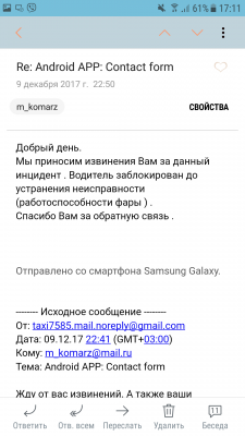 😡😡😡😡😡😡😡Вчера заказывал такси 2 раза на переулок Макаенка. Оказывается такого адреса нет. После долгих разбирательств прислали лагуну  5540 РС -7  90-х годов, у которой не горела правая фара со стороны водителя. От машины нелсло соляркой за 2 метра. Заказ был отменен.  А представители 7585 сразу заблокировали мой  аккаунт. Большое вам спасибо. Такого низкого  сервиса по обслуживанию не было никогда. Никаких извинений не последовало. Оценка за обслуживание  минус 5. Следующее сообщение в... Кстати никаких опознавательных знаков такси не было.