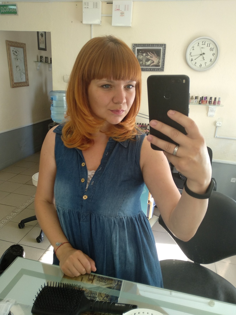 - окрашивание в один тон "Matrix" или "Carin Haircosmetic" + уход маслами + мытье/укладка по форме: