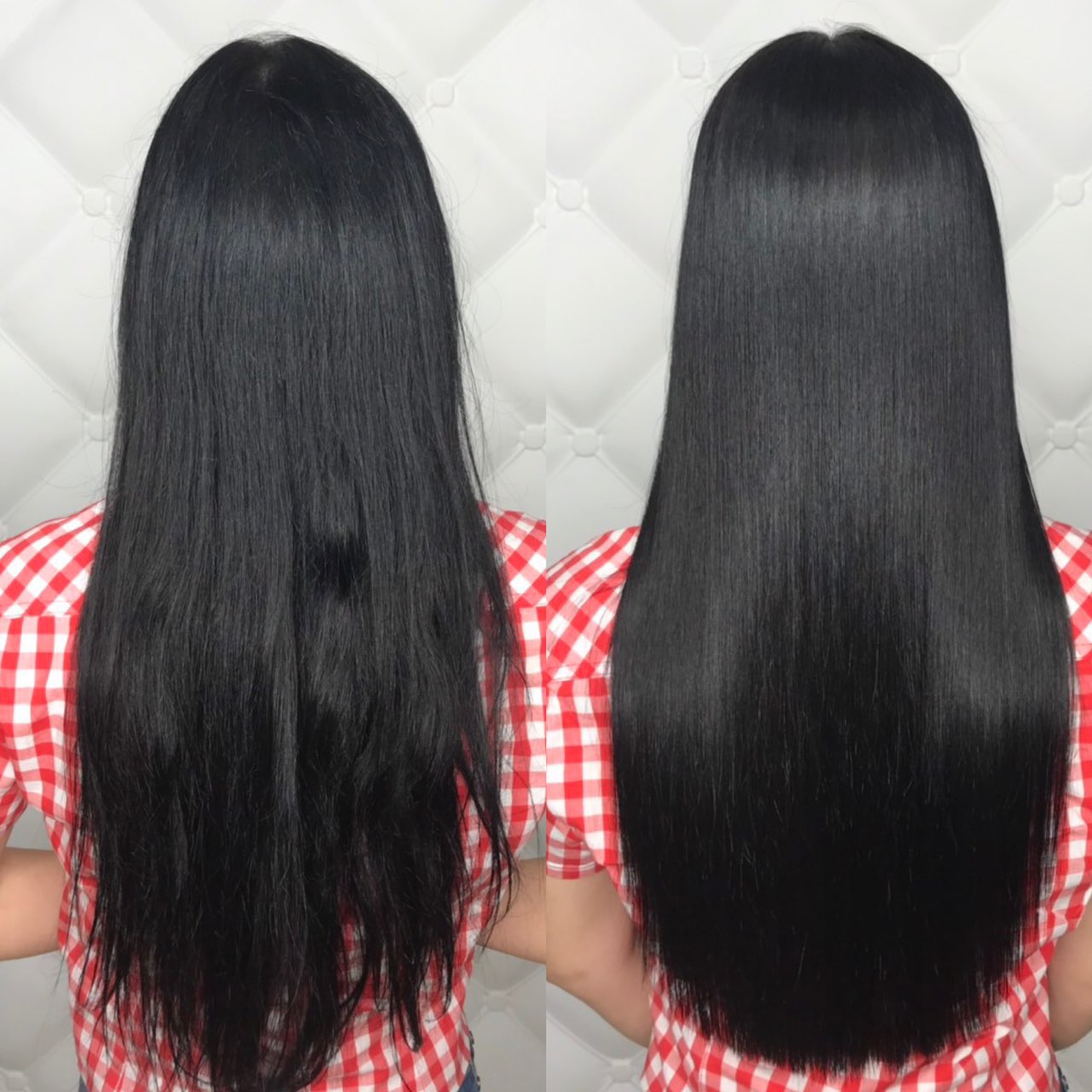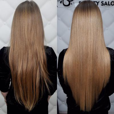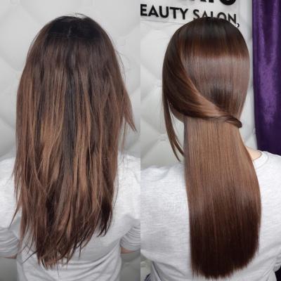 Результат виден сразу после процедуры! Результат: Максимальное восстановление волос. Уменьшение ломкости и пушистости волос. Волосы выглядят здоровыми, мягкими и шелковистыми!
