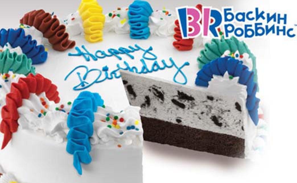 - Мы - первые в Беларуси предлагаем Вам эксклюзивные торты из премиального мороженого «Баскин Роббинс». Наши декораторы приготовят для Вас восхитительный десерт, который станет особенным подарком и сюрпризом для гостей. В этом лакомстве сорта мороженого прекрасно сочетаются с бисквитом и украшаются фруктами, ягодами, шоколадом или взбитыми сливками.