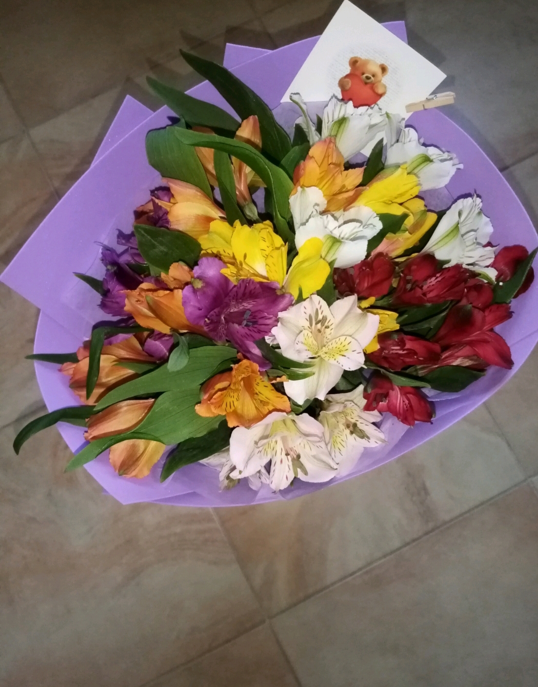 Отвратительный сервис. Курьер заранее получателю не позвонил, но это ладно. Он даже не знал, кому привез букет. В момент доставки в квартире было 3 девушки и на вопрос «кому букет» даже не ответил, хотя вся информация о получаетелк была дана (имя, номер телефона). Текст на открытке написали не такой как просили, поэтому даже по открытке было сложно понять, кому букет.