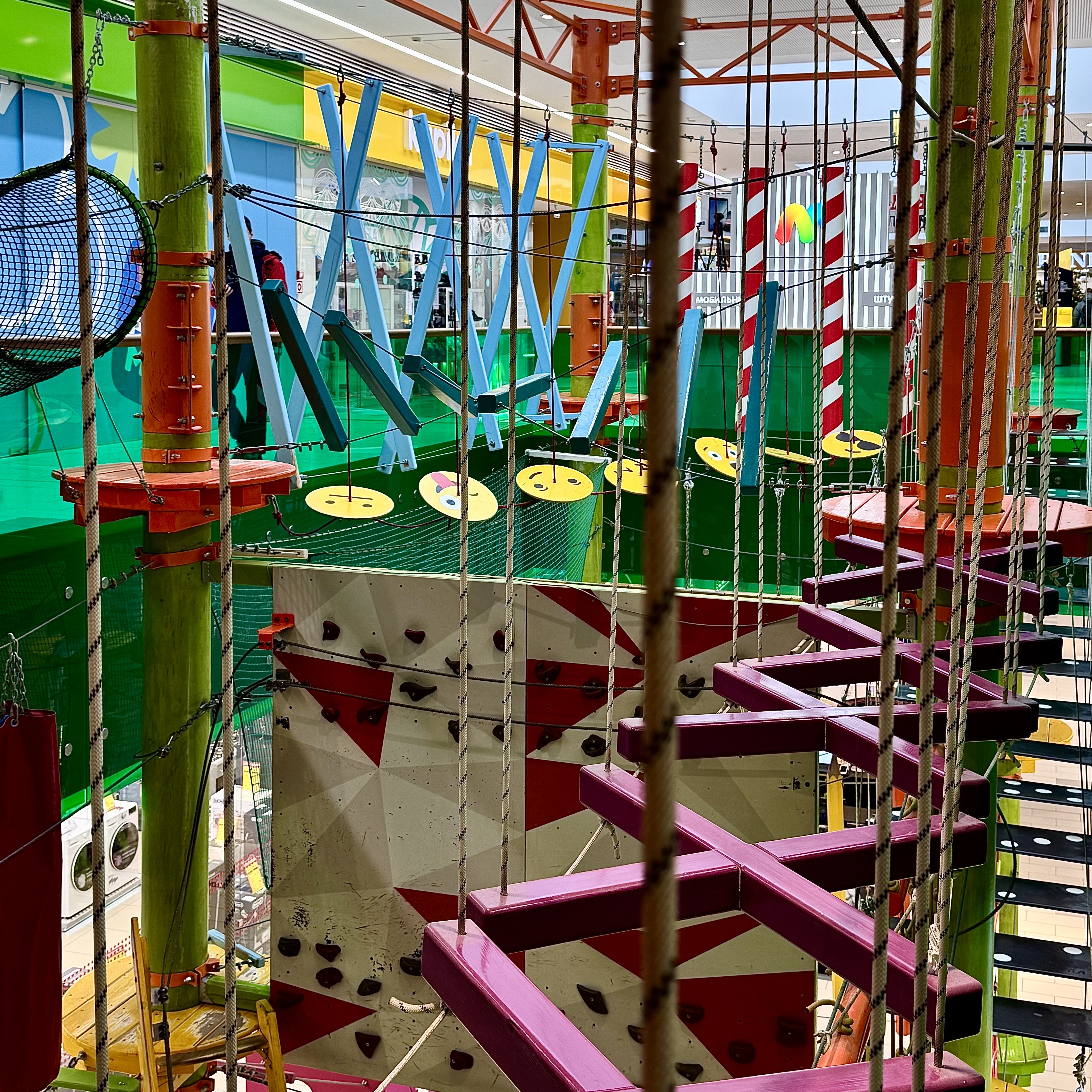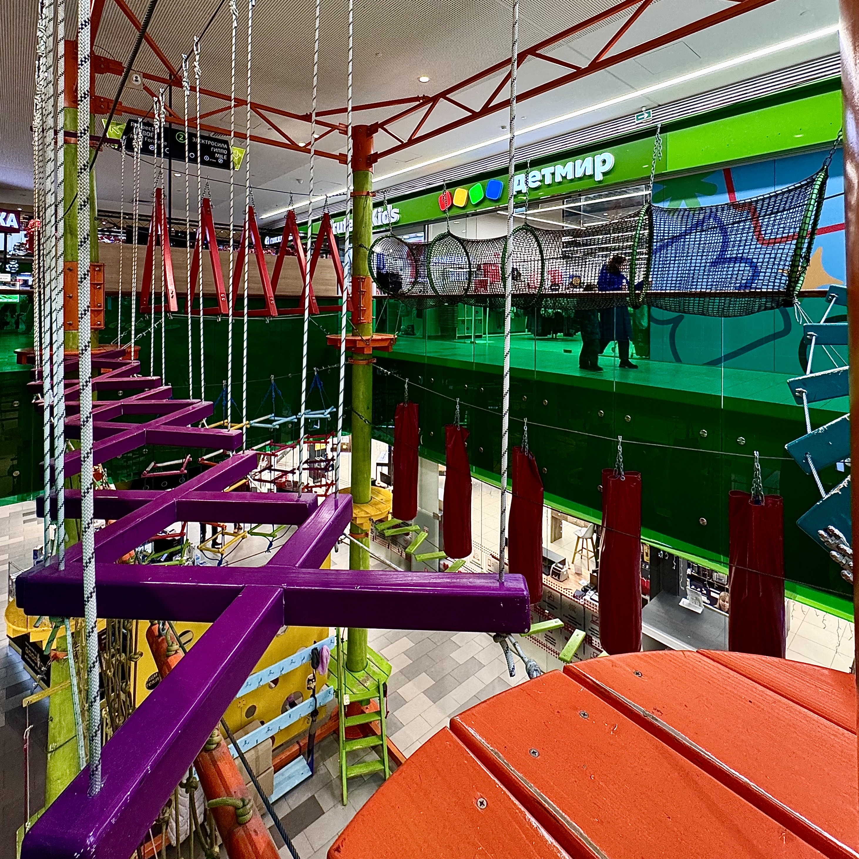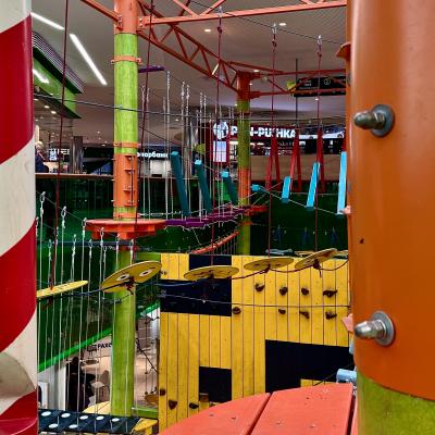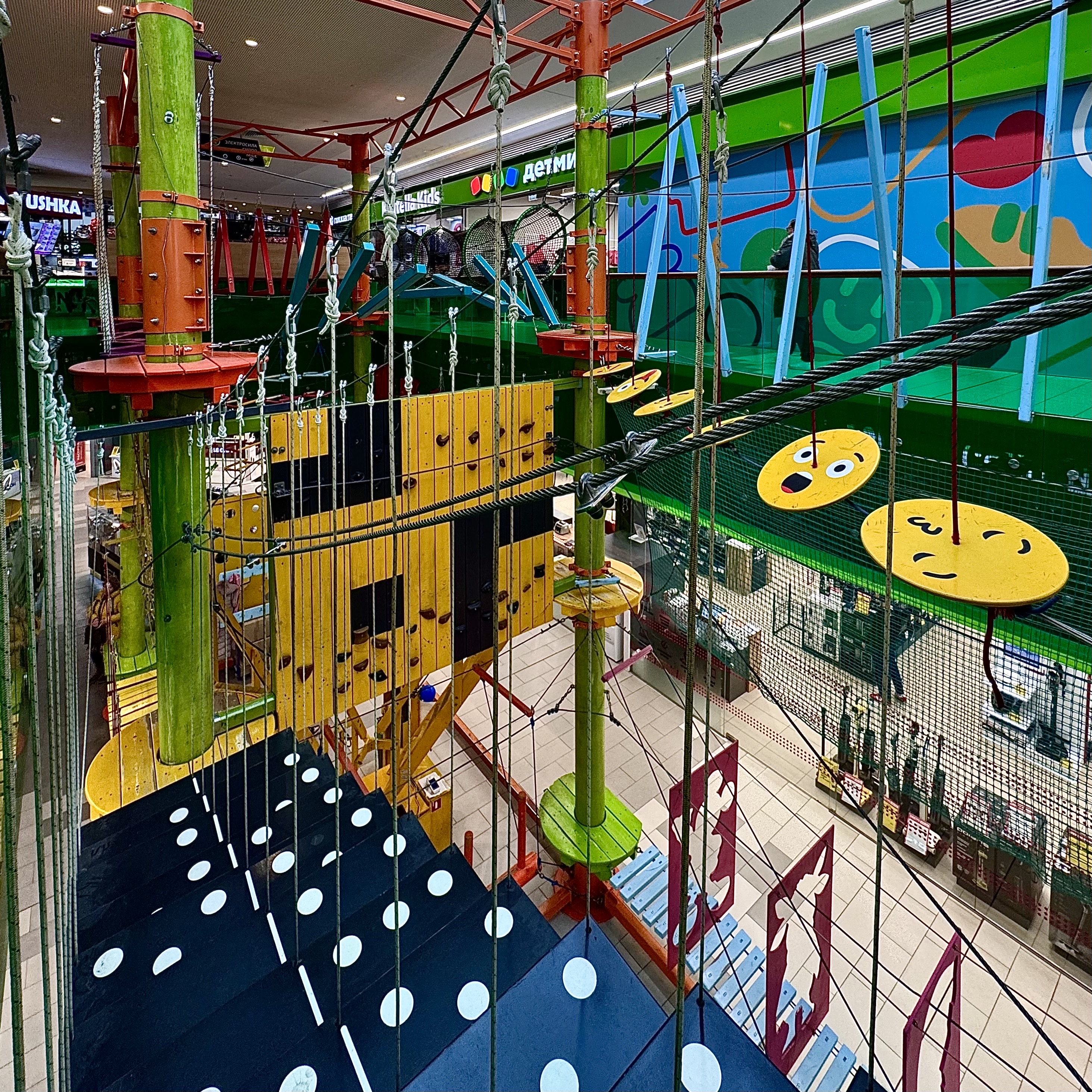 Если рост ребенка от 120 полазить на высоте пойдет, 3 уровня. Если меньше даже не едьте. Первый этаж пройти по прямой маленький прямоугольник. Тетя, которая всем этим рулит, само дружелюбие. Это сарказм, но к людям таких пускать не рекомендуется общаться. Перед тем как брать код, приедьте посмотрите.