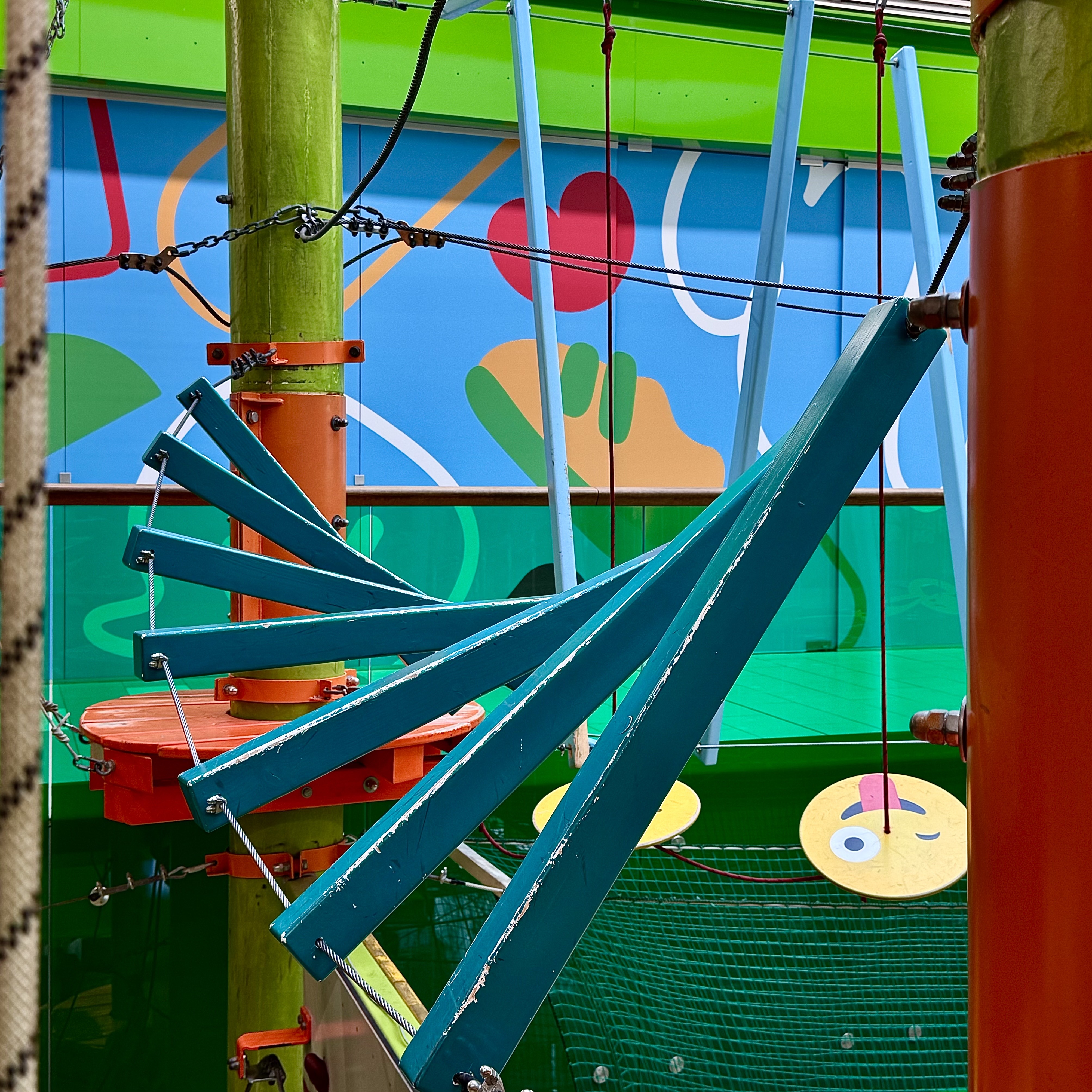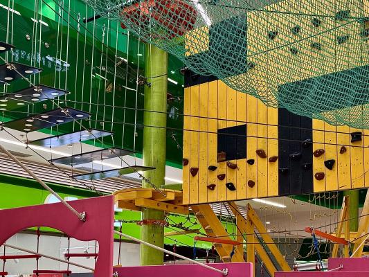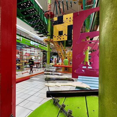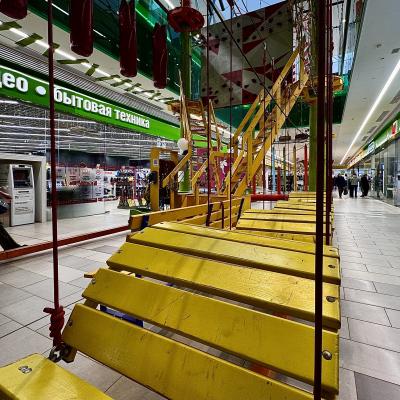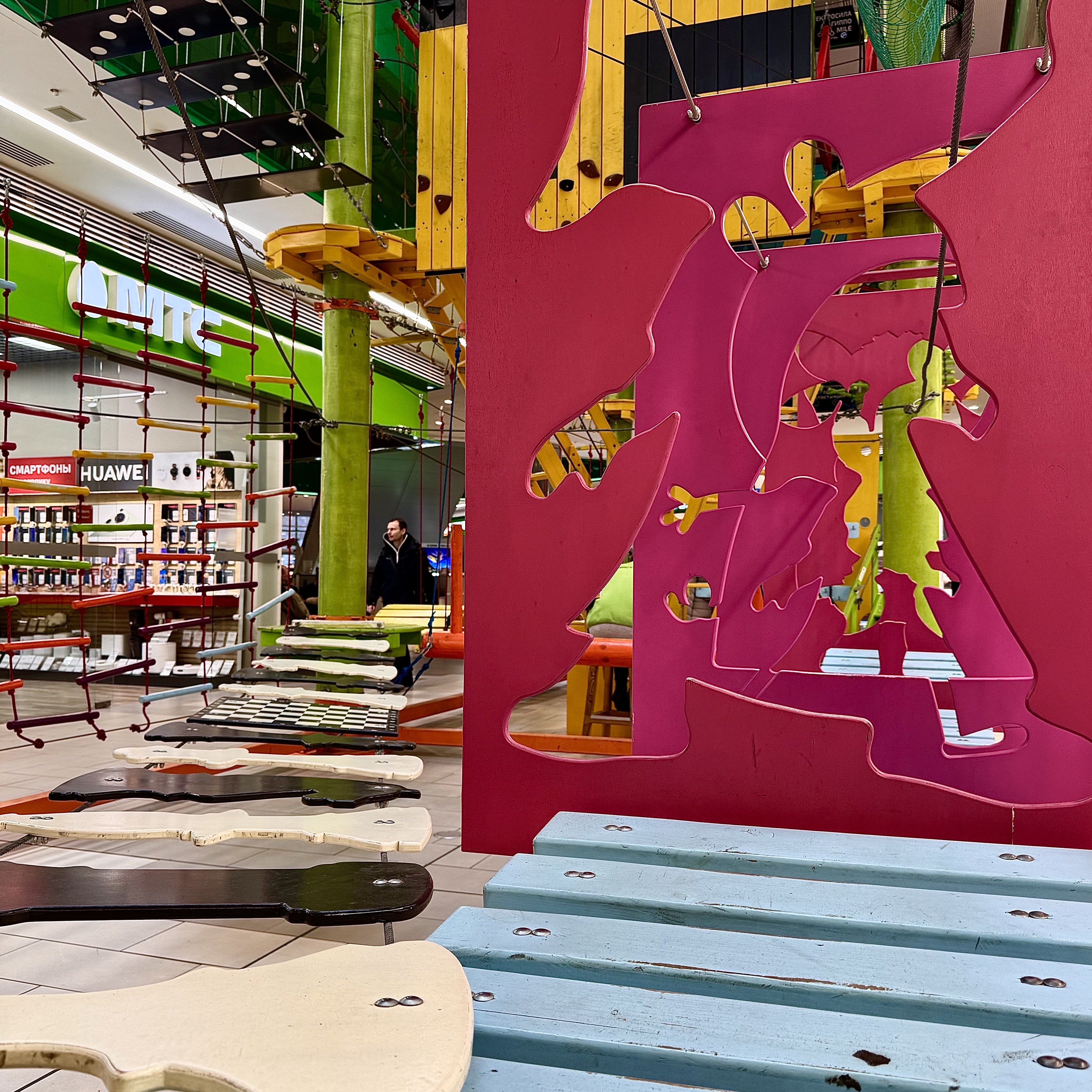 Если рост ребенка от 120 полазить на высоте пойдет, 3 уровня. Если меньше даже не едьте. Первый этаж пройти по прямой маленький прямоугольник. Тетя, которая всем этим рулит, само дружелюбие. Это сарказм, но к людям таких пускать не рекомендуется общаться. Перед тем как брать код, приедьте посмотрите.