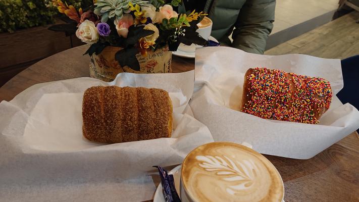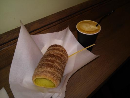 Сет: классическое Трдло (с маком, с сахаром, с корицей, разноцветные шарики, с арахисом , с миндалем - на выбор) и капучино (300 мл).