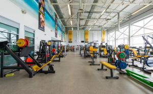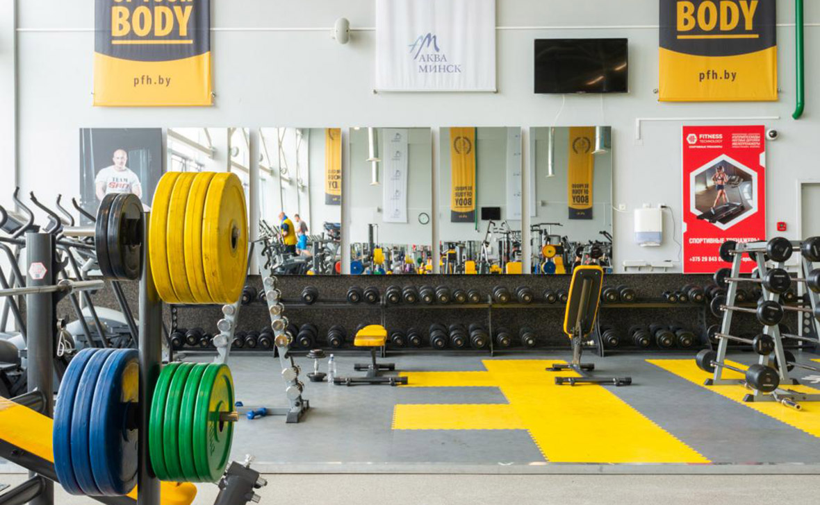 В фитнес-центре находится многофункциональный тренажерный зал площадью 630 кв.м. с высоким потолком и панорамным видом на водохранилище "Дрозды". Тренажерный зал оборудован профессиональными силовыми, кардиотренажерами и гантельным рядом до 50 кг. В зале фитнеса проходят тренировки с TRX-петлями, занятия единоборствами и другим направлениям фитнеса.