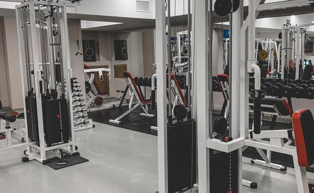 - Тренажёрный зал полностью оснащён профессиональным оборудованием