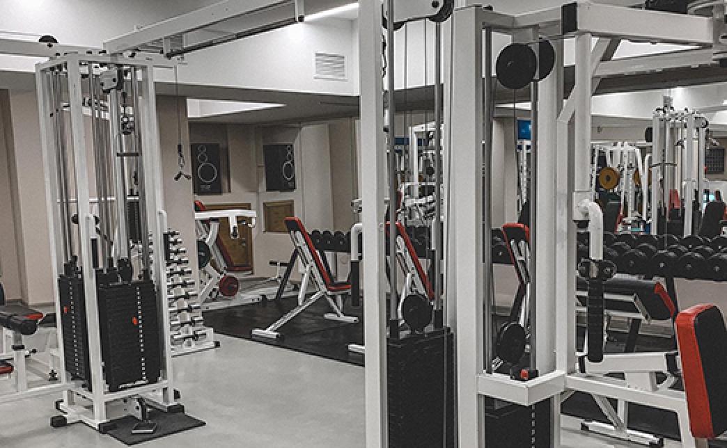 - Большой выбор свободных весов и грузоблочных тренажёров