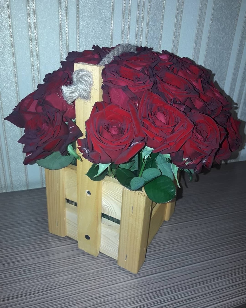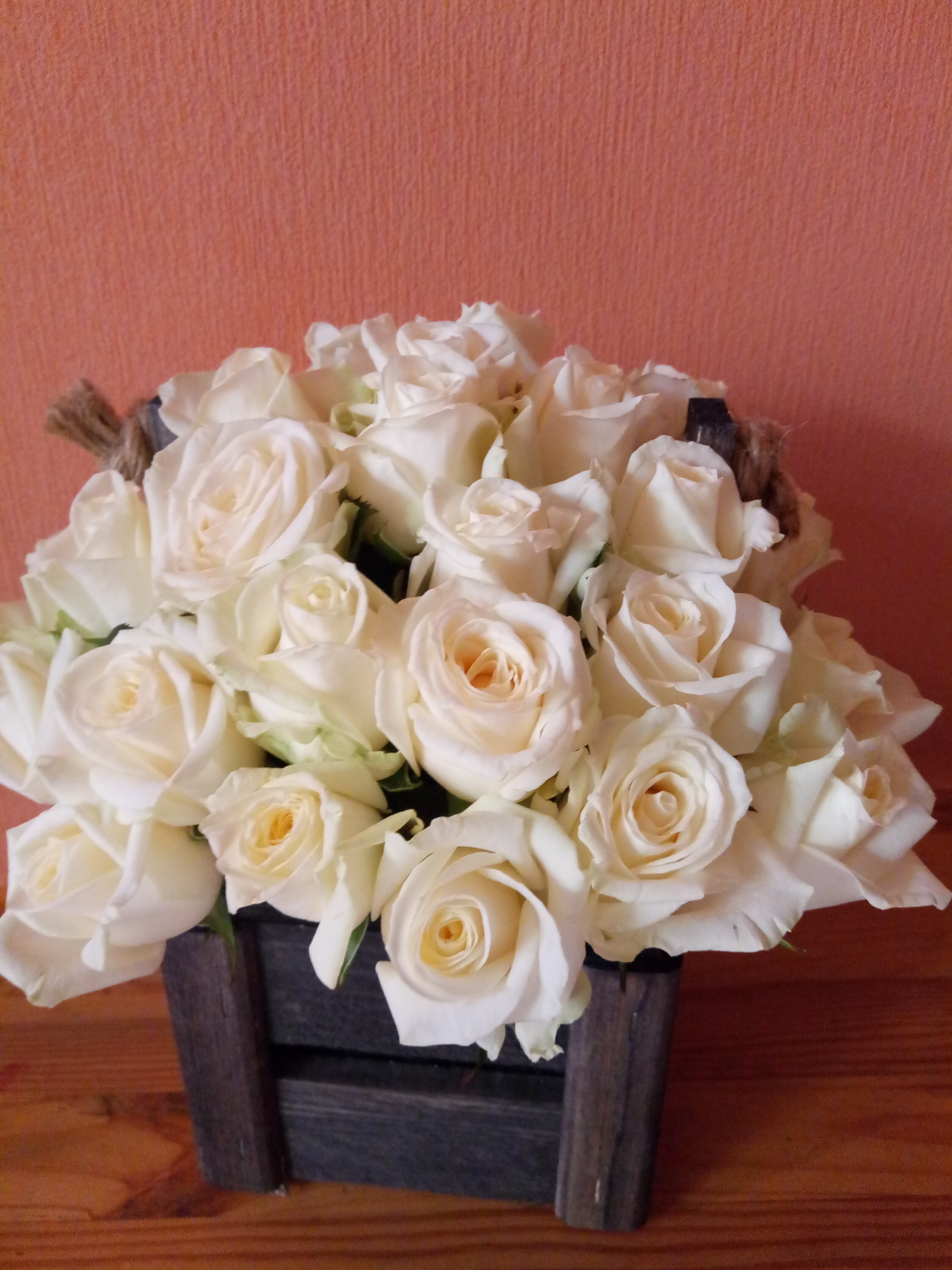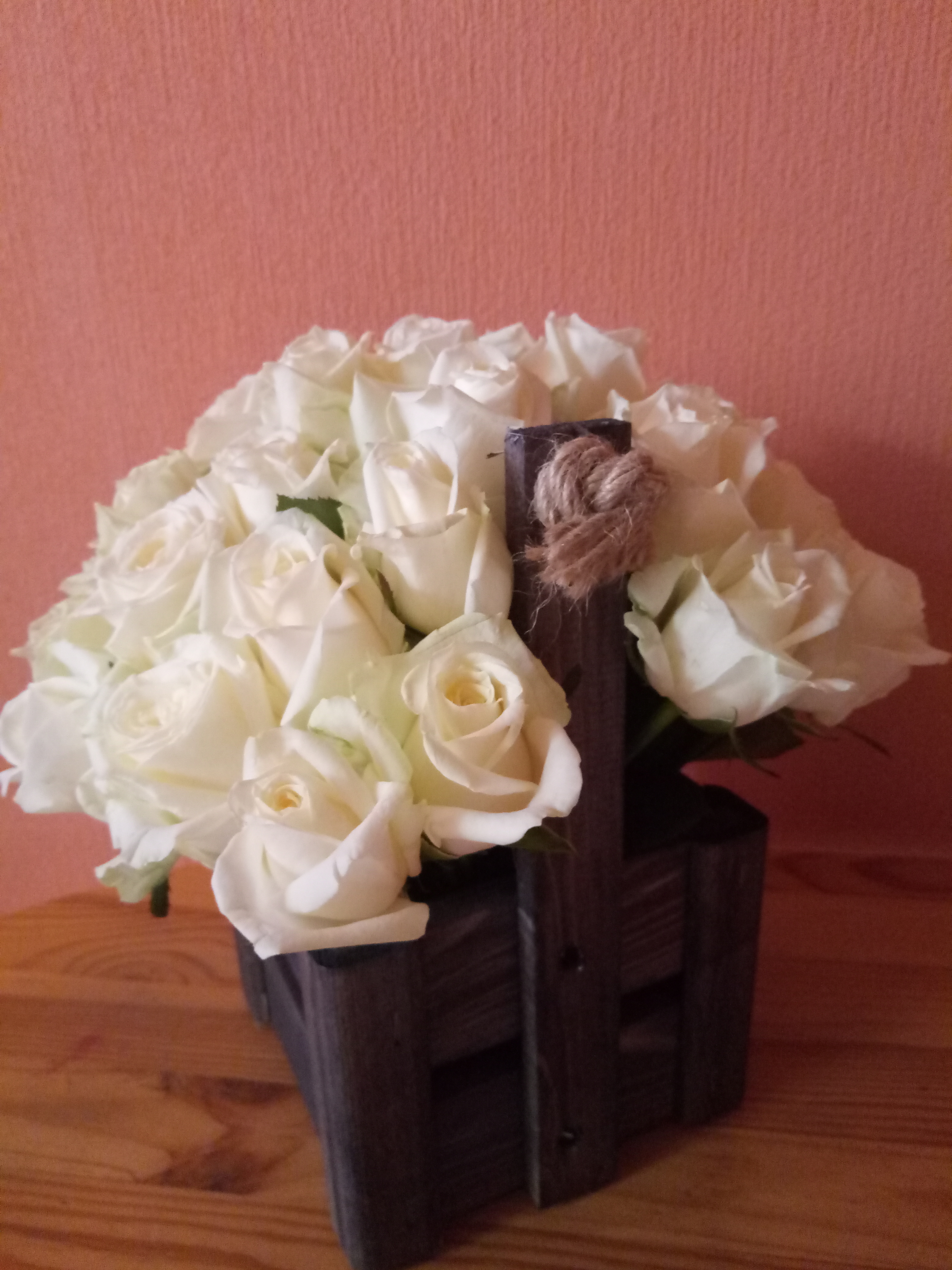 заказала персиковые розы в белом ящике с ручкой в итоге коричневый ящик с веревкой, насторение испорчено, цвет ящика был пренципиален и розы слегка не свежие