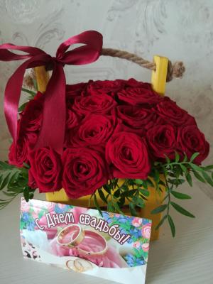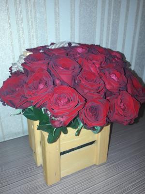 Цветы супер!!! Оформление на 100 баллов, Розы свежие и безумно ароматные, ящик -это просто фурор!!! Наш букет был самым лучшим на юбилее!!! Да и к тому же простояли 10дней (при том, что им пришлось выдержать две дороги по 200 км в жару!!!) Спасибо огромное за такую красоту!!!!!!!!!! Ждём ещё от Вас новых акций!!!