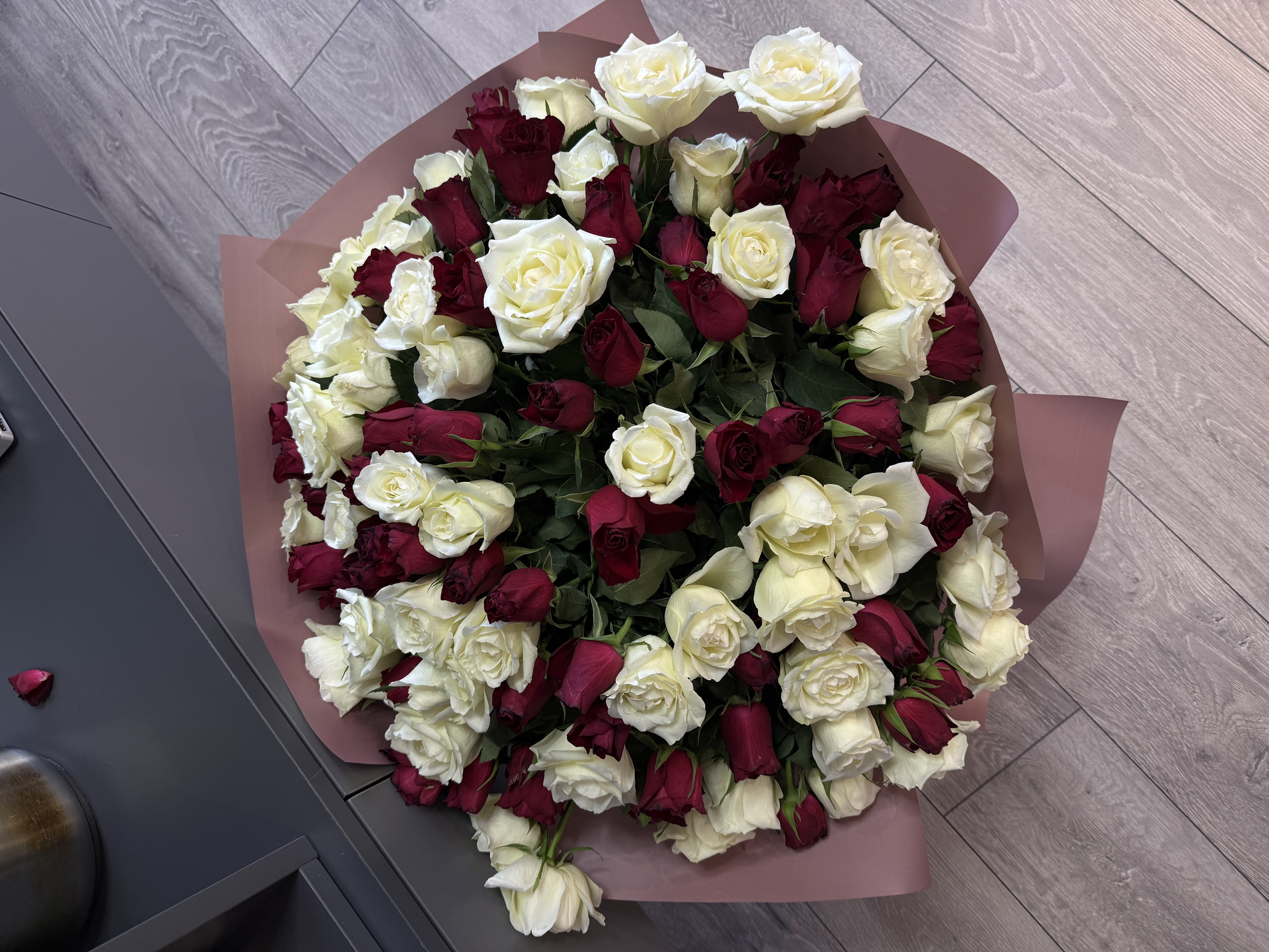 - розы "Кения" в ассортименте (от 11 шт): 4 р. 7 р.