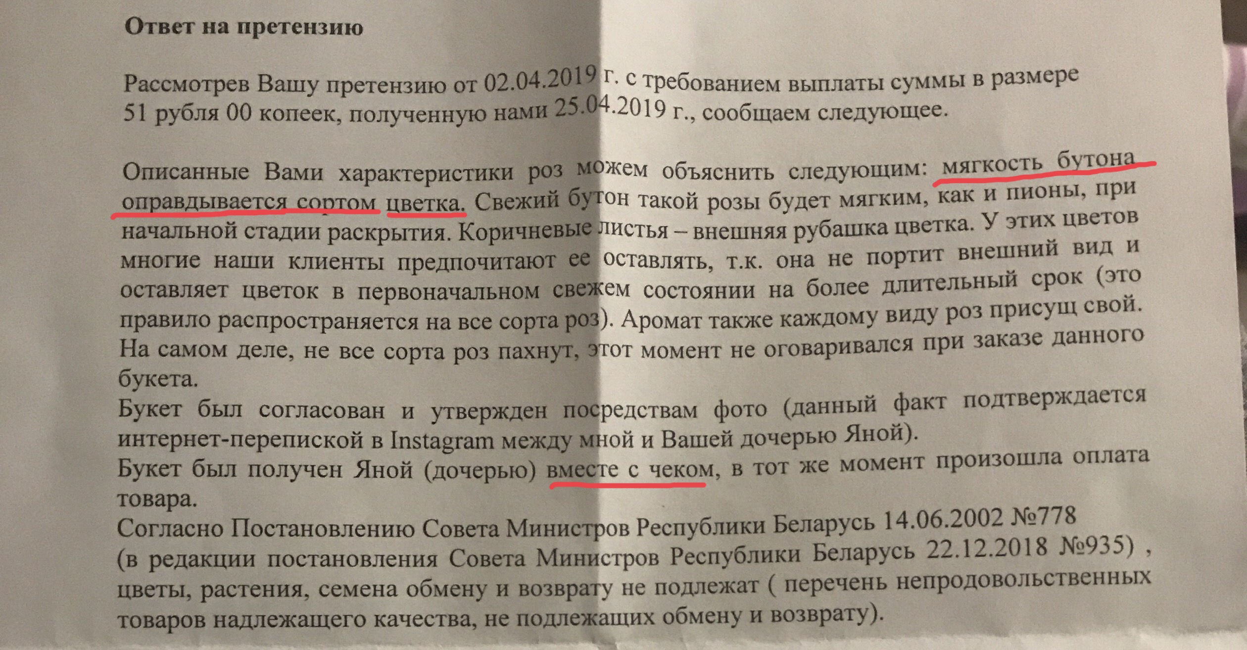 - Фото букета перед доставкой.