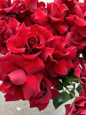 Состав: французская роза, кустовая роза, диантусы, зелень, упаковка