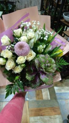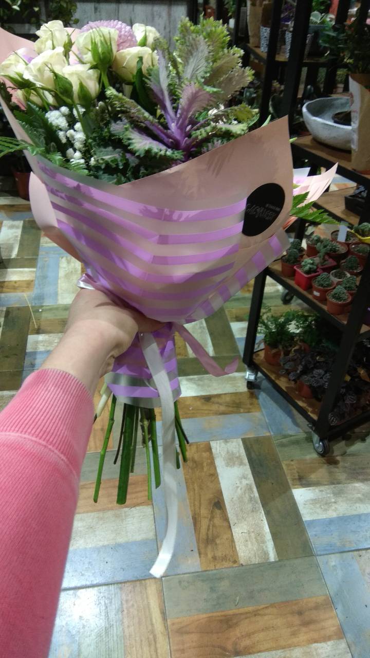 Милые флористы и свежие цветы. Именинница осталась очень довольна букетом. Надеюсь 8-го марта всё останется на таком же уровне ;)