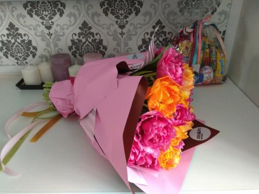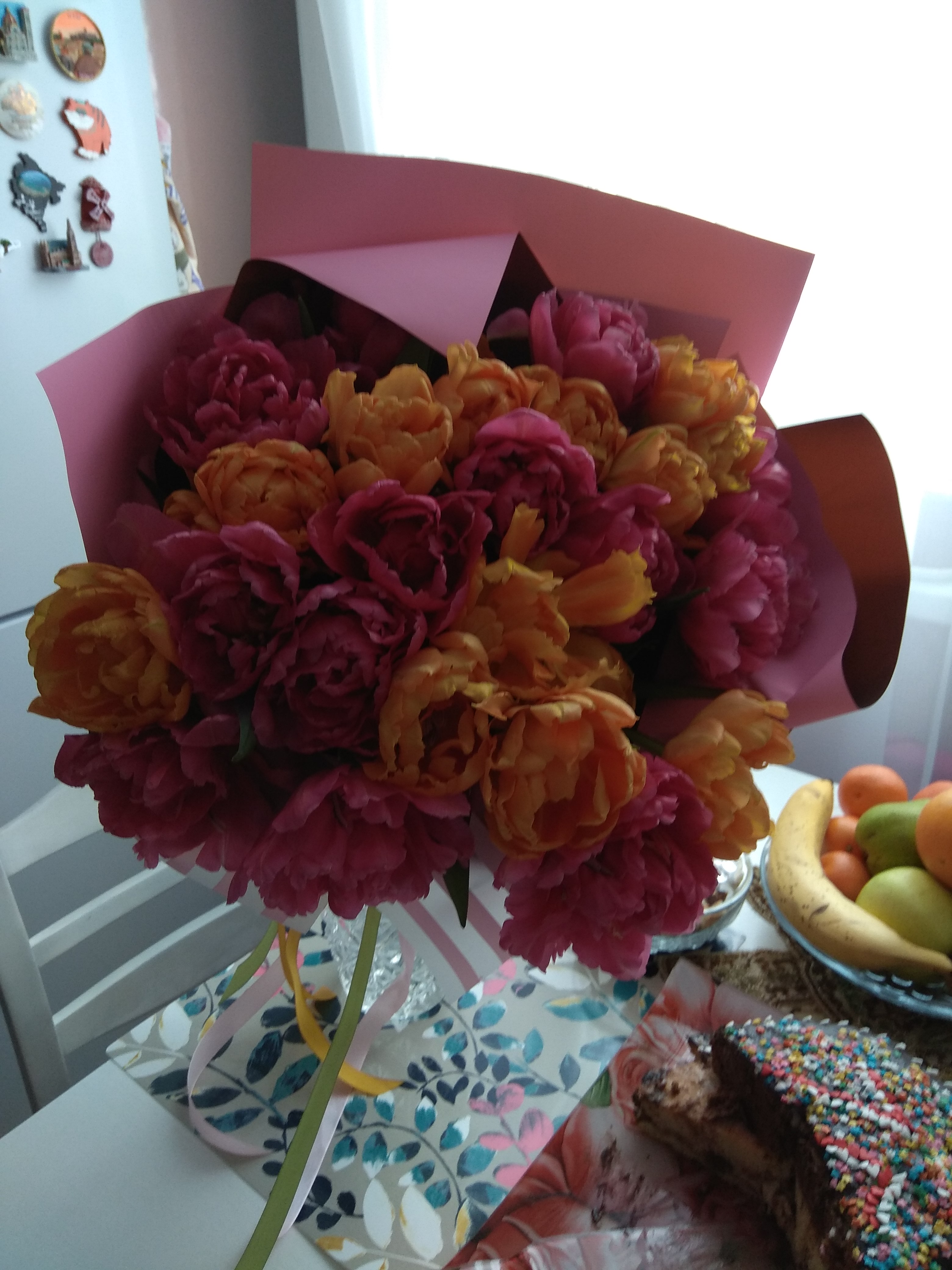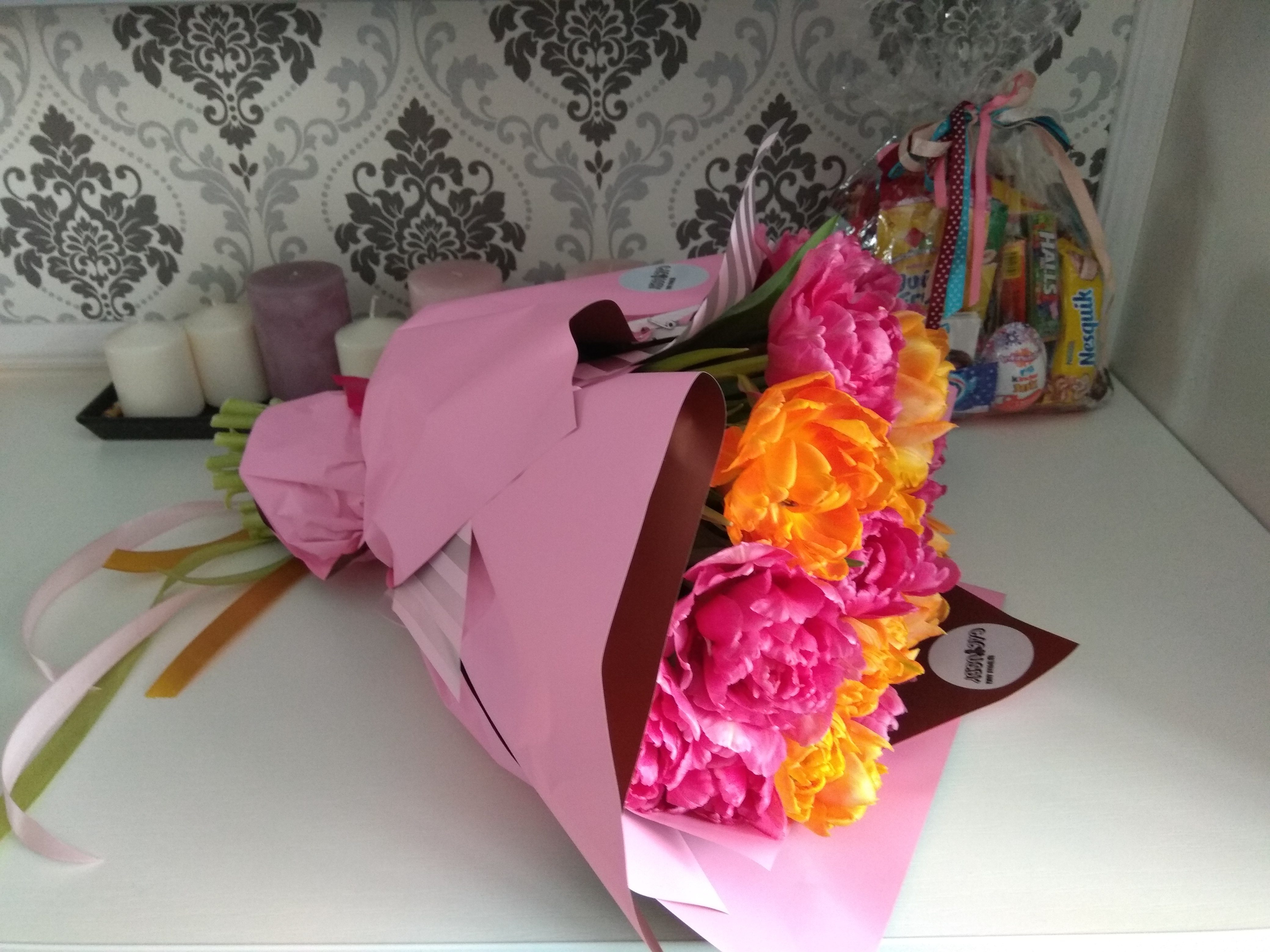Спасибо большое за букет из 25 тюльпанов идеально "доживший" до вечера в лютый мороз 28 февраля! Спасибо Ольге, которая за два дня уже предлагала мне разные варианты, хотя я даже еще не делала заказ, спасибо директору Анастасии, которая лично привезла мой букет! Всем про вас рассказываю и рекомендую! Это был мой первый заказ, но явно не последний!