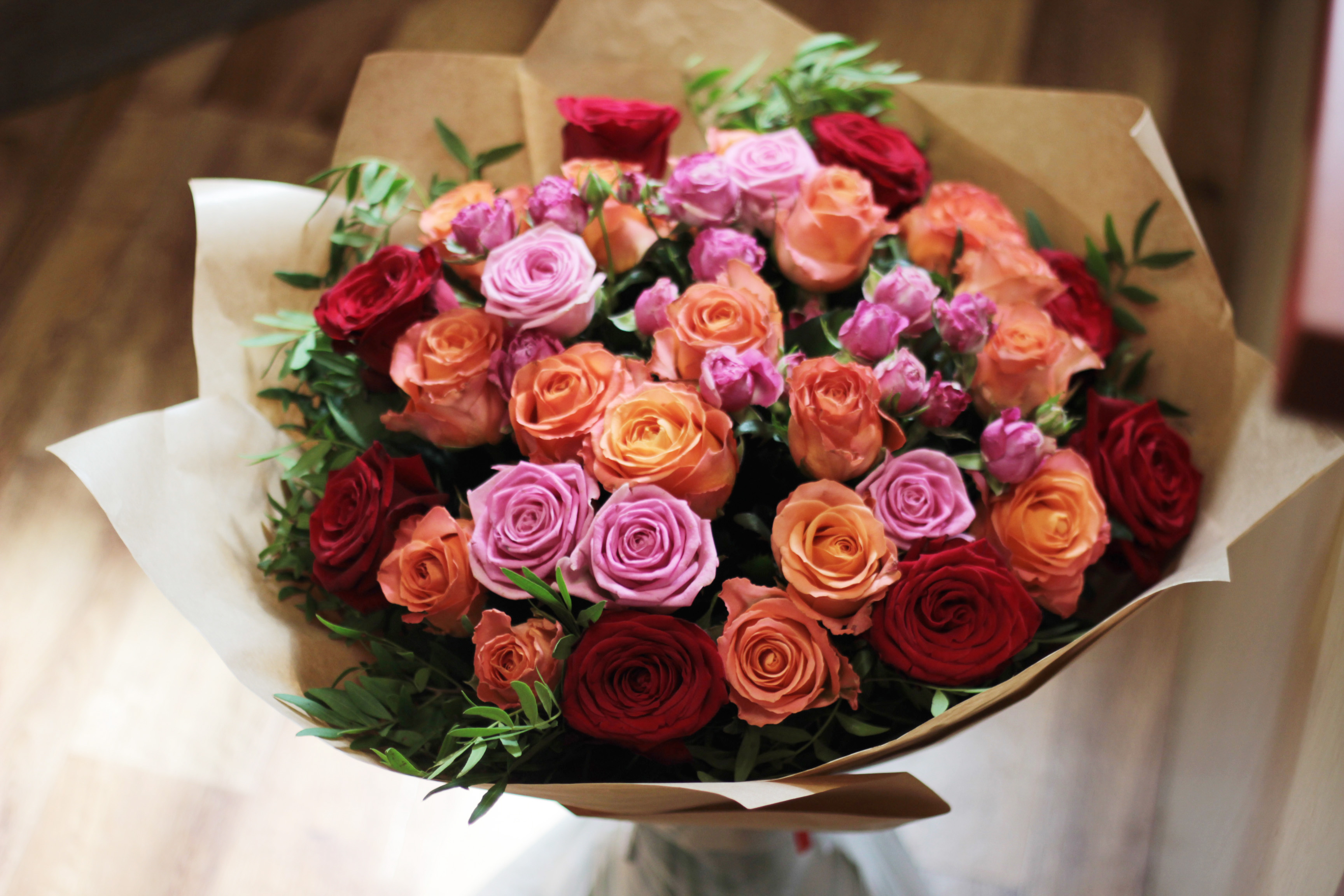 Стильные букеты, композиции, розы, гвоздики от 2 руб.