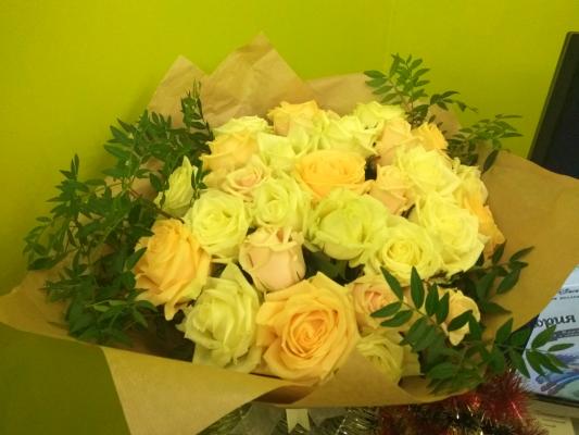 Спасибо,что нашли время написать отзыв!Искренне рады,что букет доехал до именниницы свежим)Ждем Вас за новыми покупками в нашем магазине)