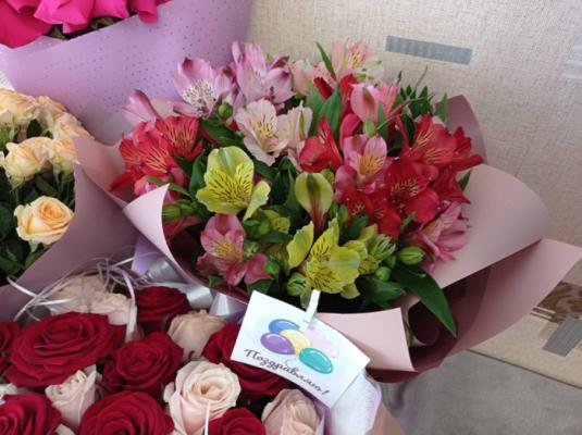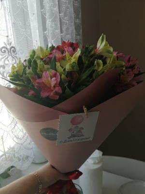 - К букету мы можем прикрепить мини-открытку с посланием (стоимость 1,70 р). Примеры открыток здесь
