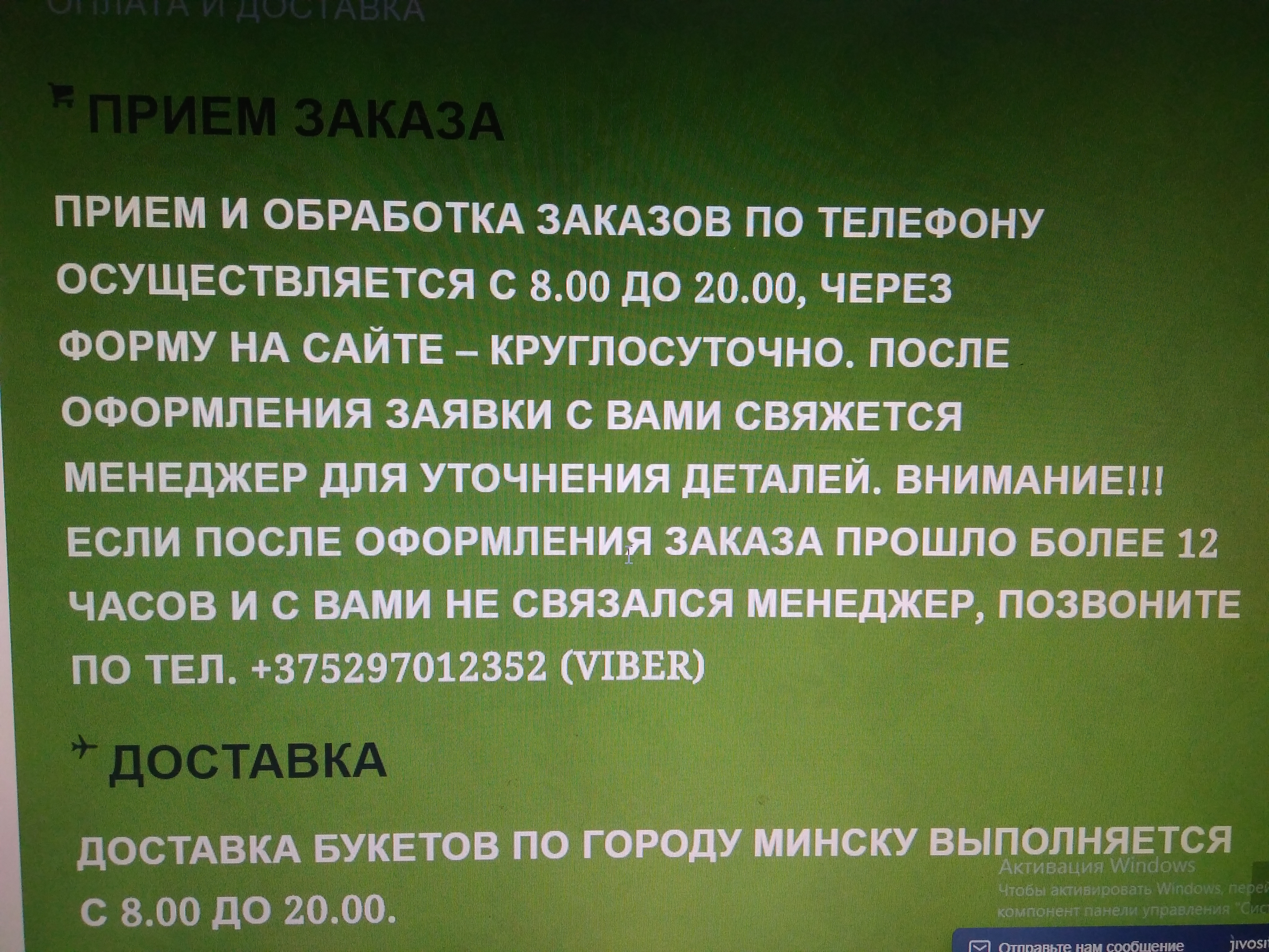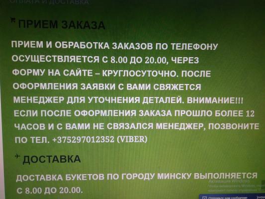 - Доставка по г. Минску выполняется при сумме заказа свыше 50 р. с 8:00 до 22:00 в пределах 2-х часового интервала: