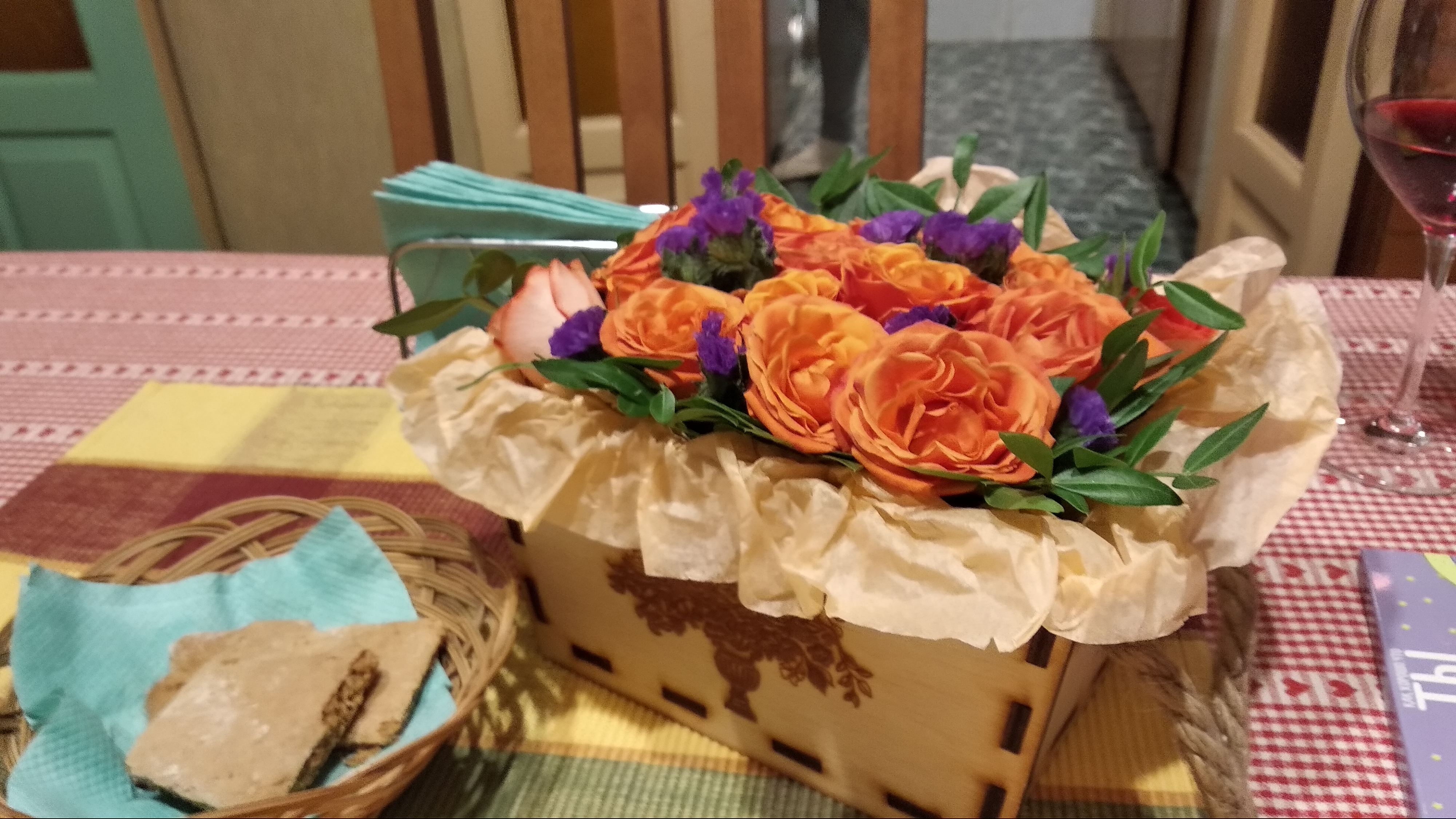 Заказваў кветкі ў драўлянай скрыне. Па тэлефоне дамовіўся на самавываз на наступны дзень, паабяцалі, што ўсё будзе выглядаць менавіта так, як на старонцы з акцыяй, да таго ж фларыст павінен быў папярэдне даслаць фотаздымак. Здымак аднак не даслалі, а кветкі выглядалі не зусім так, як на фота, да таго ж скрыня выглядала зусім інакш (скрыні, адпавядаючыя фота, скончыліся). Кампазіцыя спадабалася, аднак усё ж такі ў параўнанні з прома-здымкам - даволі сур'езная розніца...