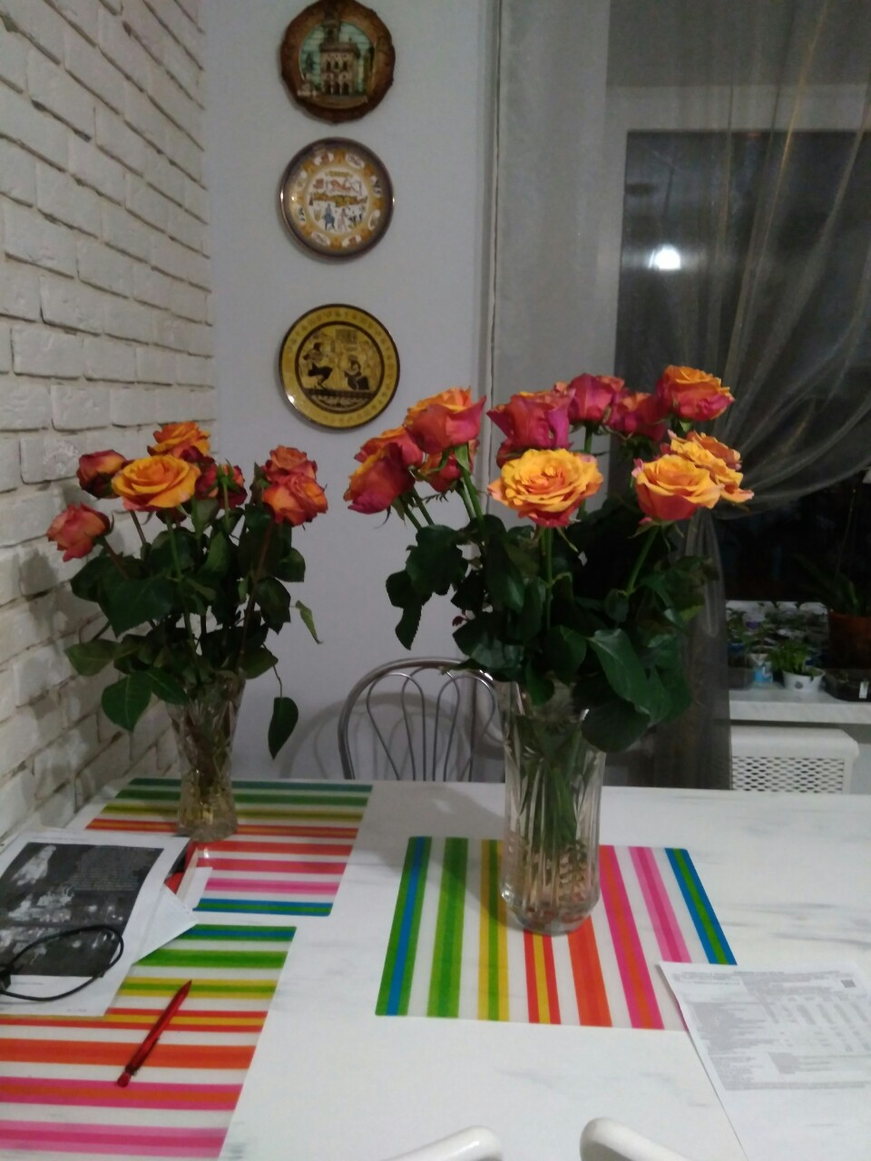 Приобретала розы для мамы на юбилей 8 апреля,  цветы были найсвежайшие,  обещали что простоят до 2 недель и действительно две недели цветы радуют мою маму!!! Интересно,  что папа подарил маме в одной цветовой гамме вместе с моими,  но его цветочки не были так "бодры", на фото они слева,  а мои красавчики - справа.   Спасибо большое,  теперь за цветами только к вам!  Качество отличнейшее!