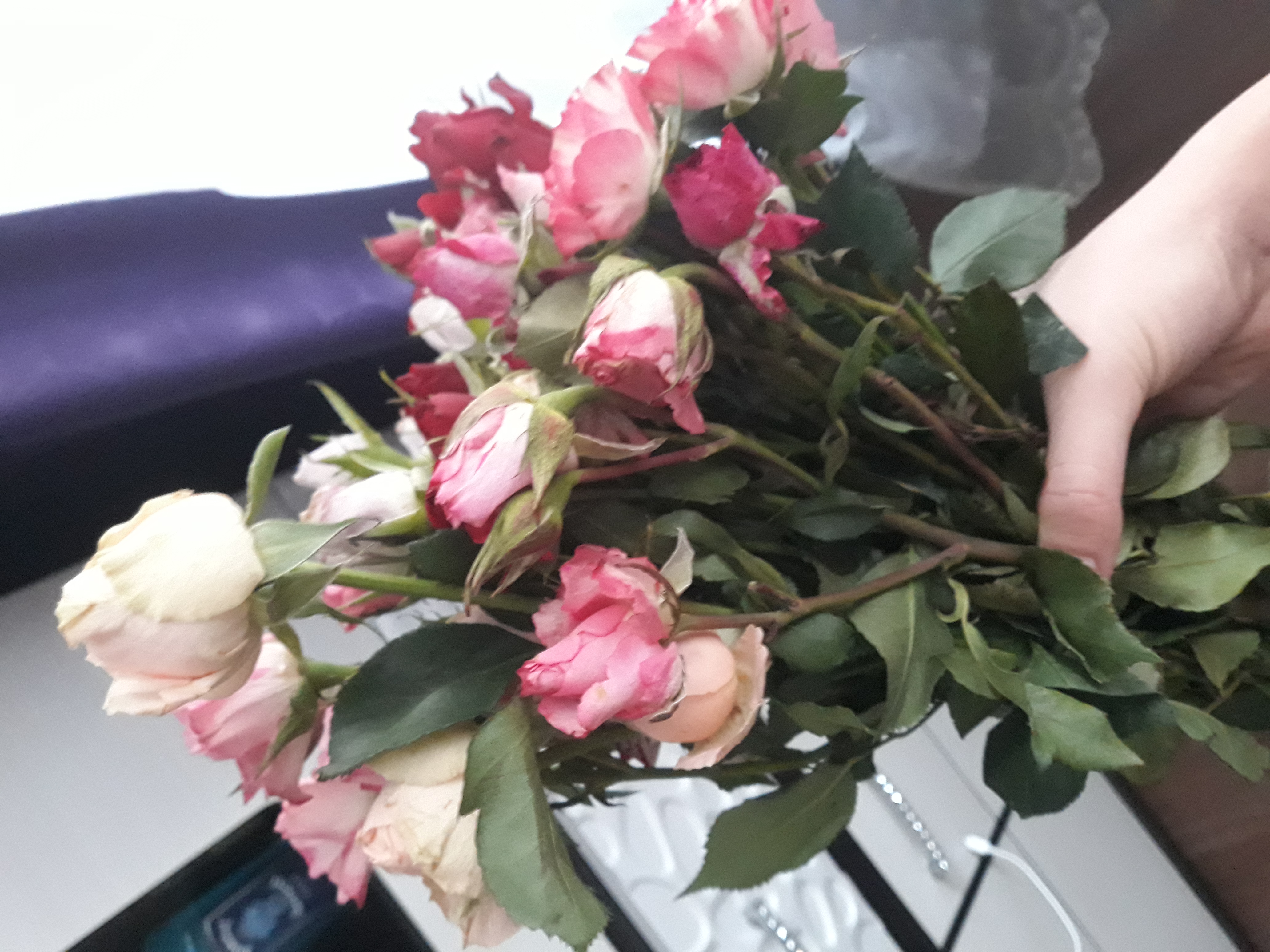 Покупали розы 08.06.2019, вид был не свежий, первые лепесточки на розах были потемневшие и  подвявшие, когда я спросила почему они такие не свежие и можно ли поменять или оторвать первые лепесточки, на что девушка-консультант сказала что это якобы рубашка и они будут дольше стоять, а если их оторвать то они быстро начнут вять, в итоге купили ничего не отрывая, пока доехали до место дарения это где-то 1,5 часа, завяло штуки четыре, а пока дарить нужно было ещё достали из букета 2 штуки, в итоге из 15  вроде как свежих, подарили 9 еле держащиеся на стебле, в общем праздник испорчен и настроение тоже. Покупала тут впервые в этом месте, видимо одновременно и в последний раз.
