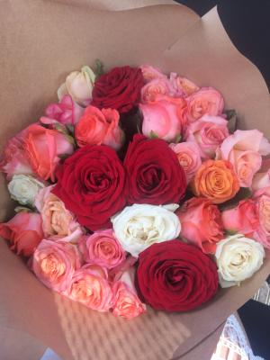 Брал два букета. Розы не свежие, бутоны маленькие. через пару дней всё завяло.