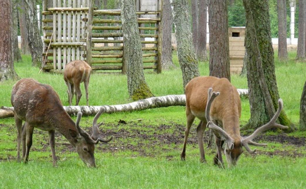 Прогулка вдоль вольеров с дикими животными позволит Вам и Вашим малышам полюбоваться величественными зубрами, грациозными оленями и косулями, увидеть осторожную рысь, диких кабанов, некоторые виды хищных птиц, среди которых, пристальное внимание привлекает самая большая сова - филин ушастый, ну, и конечно же, Ваша прогулка по сказочному лесу не обойдется без знакомства с героями любимых сказок - волка, медведя и лисицы.