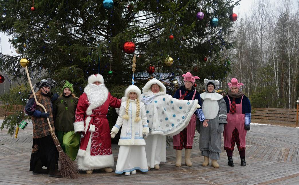 На подворье Деда Мороза Вас встретят Дедушка Мороз, красавица Снегурочка и любимые герои. А на площадка с необыкновенно красивой новогодней ёлкой каждый желающий сможет поводить хоровод, увидеть ветряную мельницу и скульптурные композиции из дерева, множество огоньков.