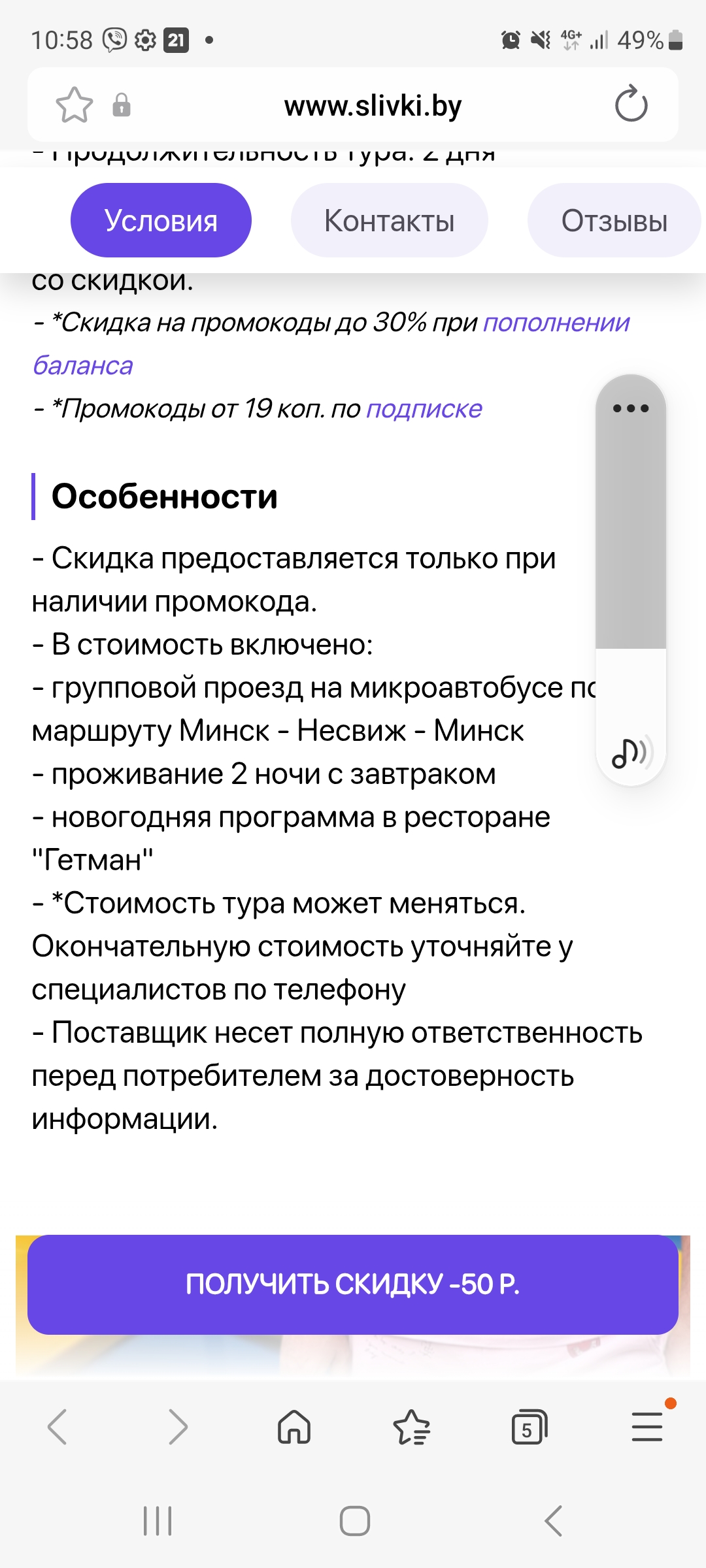 - Промокод дает право на скидку 50 р. на тур "Фантастический Новый год в Несвижском замке" от туристической компании "Экотурист"