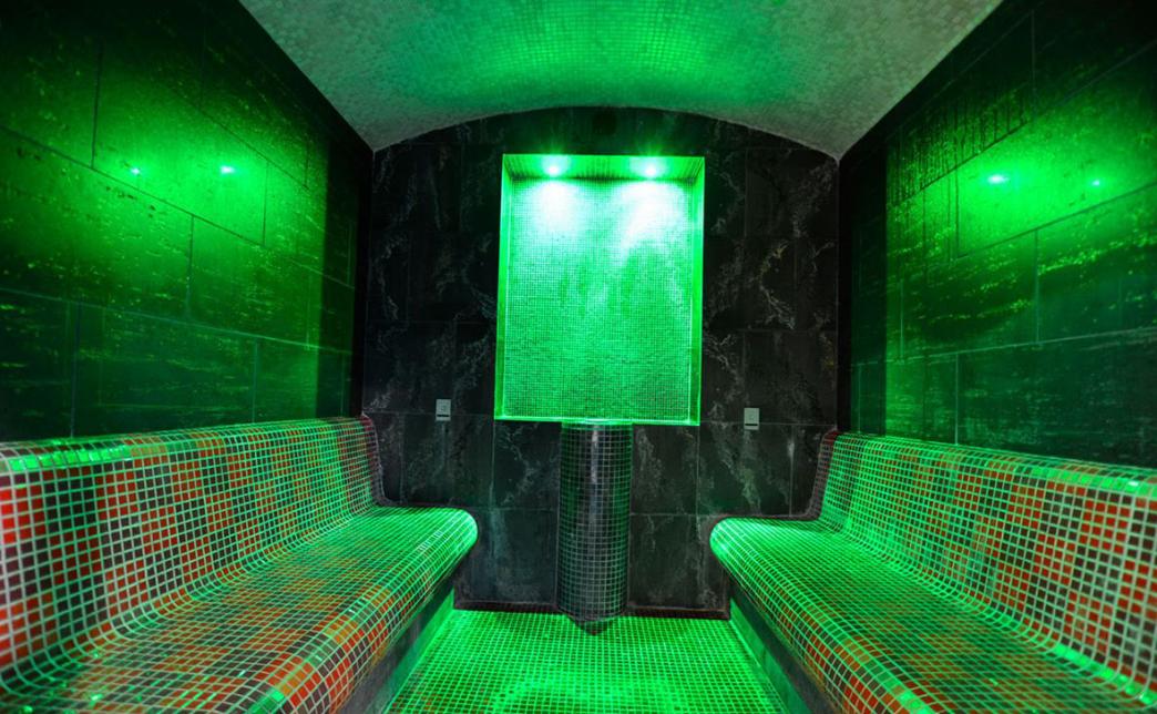 Термальный комплекс оборудован финской сауной и турецкой парной. Финская сауна изготовлена из натуральной древесины, что максимально повышает воздействие парилки на человеческий организм. Благодаря действию высоких температур, значительно улучшается самочувствие и повышается иммунитет человека.