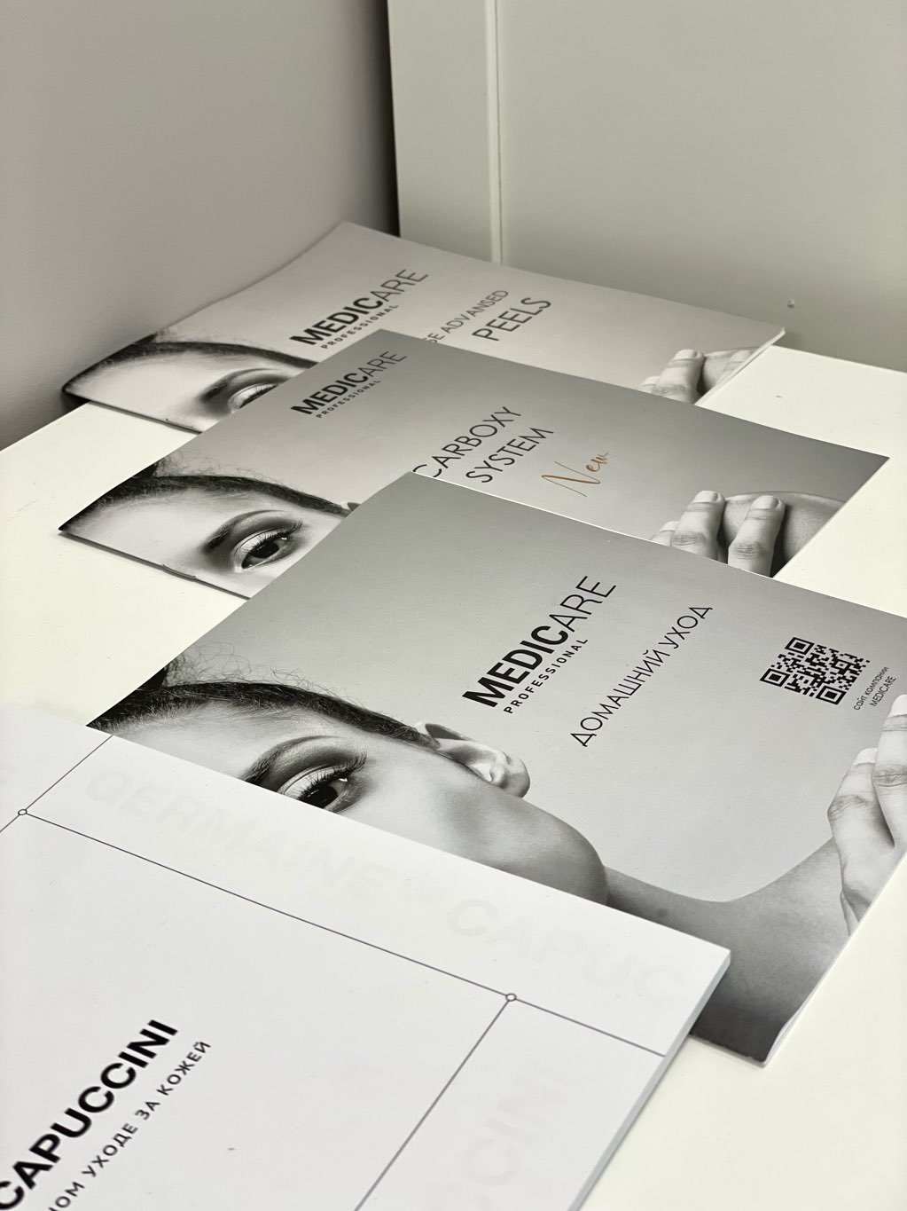- Используется только профессиональная косметика класса люкс: "Medicare", "Germaine de Capuccini", "Onmacabim", "Dermatime", "Mediderma", "GIGI", "Demax", "Cantabria Labs", "l’ecole", "BIOLINE JATO"