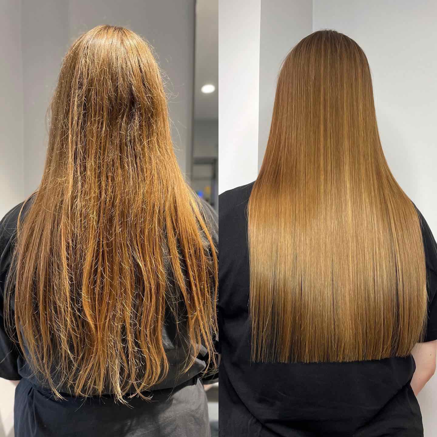 Состав проникает в структуру волоса, заполняя пустоты и повреждения, восстанавливая его изнутри. Процедура помогает укрепить волосы, сделать их более гладкими, блестящими и послушными