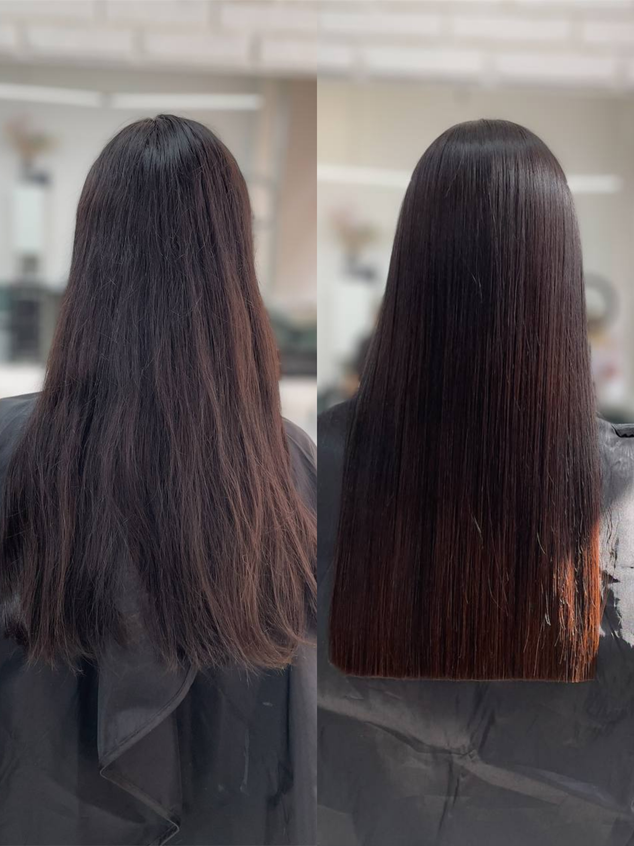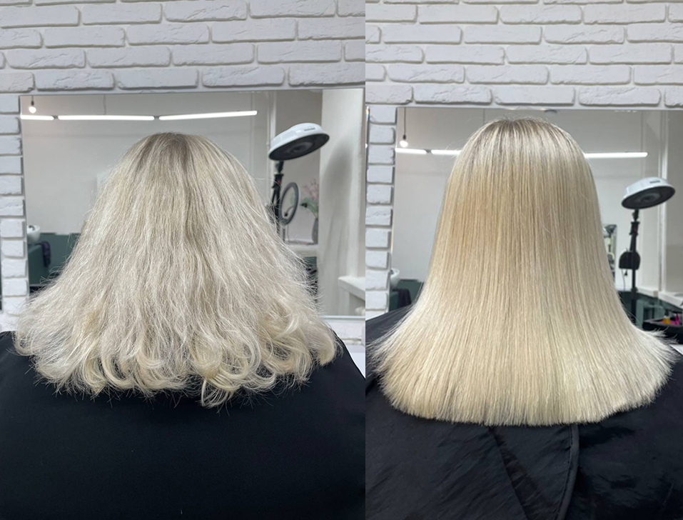 Кератиновое выпрямление волос питательными составами для славянских, тонких и обесцвеченных волос. Процедура направлена на выпрямление, избавление от ломкости, придание блеска, повышение упругости и устранение пушистости. Волосы после процедуры становятся более мягкими и послушными.