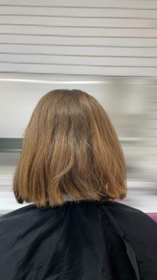 Кератиновое выпрямление очень вьющихся волос. Процедура направлена на выпрямление, избавление от ломкости, придание блеска, повышение упругости и устранение пушистости. Волосы после процедуры становятся более мягкими и послушными.