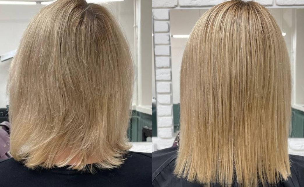 Комплекс "Тотальная реконструкция волос" - холодное восстановление c закрытием горячей процедурой кератина или ботокса. Процедура направлена на восстановление волос на молекулярном уровне. Возвращает волосам эластичность, прочность, плотность, насыщает волосы аминокислотами, восстанавливает гидро-липидный баланс.