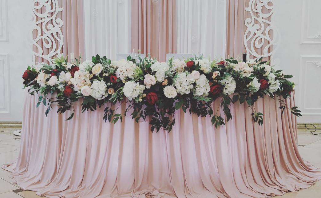 - стол для молодых (президиум) (декор тканью, цветами, аксессуарами): от 50 руб. 100 руб.