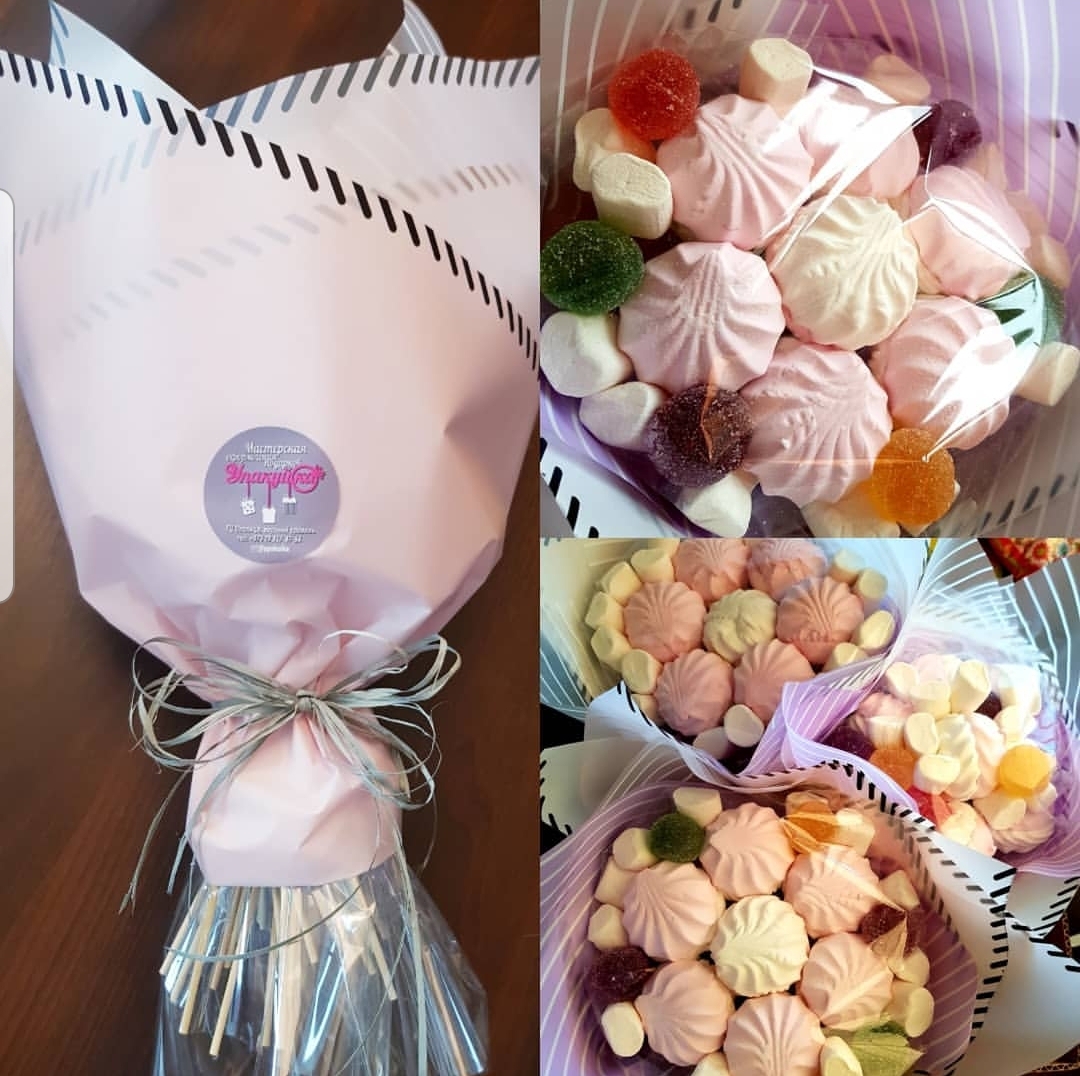 Сладкие зефирные букеты от 17,50 руб, оформление подарков на любой праздник от 2,25 руб. от мастерской "Упакуйка"