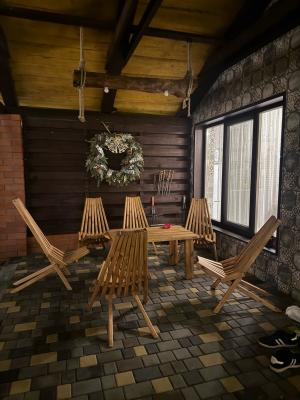 - терраса с деревянной мебелью