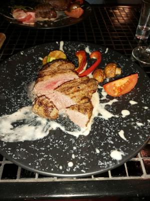 - Глазированные телячьи щечки со стейком из капусты и мясным соусом (130/150 г) - 1 порция