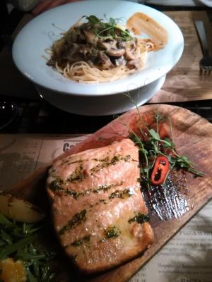 Приятный интерьер, фоновая музыка, внимательный официант ...некоторые шероховатости были, но в целом хорошо. Особенно рыба и десерт.