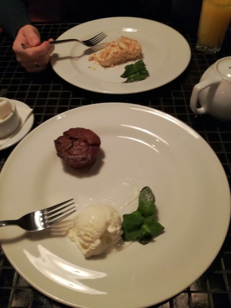 Понравились салаты. С вафлями меньше, а из свежих овощей так вообще на отлично. Легкий, приятный на вкус. Горячее и правда на любителя. Если не имеешь представления, что такое перепел фаршированный печенью, или говяжьи щечки, то будешь удивлен... Но с большего понравилось. Гречка на удивленье вкусная, это я говорю как не особый любитель этой крупы. С десертами все на ура!Тут без промашки! Кекс и Наполеон на высоте!