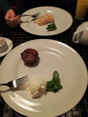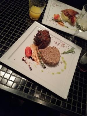 Были на ужине: салаты очень специфические, на любителя (нам не понравились), вторые блюда: форель - вкусно , красивая подача, а вот бефстроганов "подкачал", мясо было жесткое, много прожилок, приходилось усиленно пилить ножом:( , хотя сама паста к нему была вкусной. Десерты: опредленно самая вкусная часть вечера! Обслуживание на 5! Очень приветливая официантка, спрашивала довольны ли едой, вовремя убирала посуду!