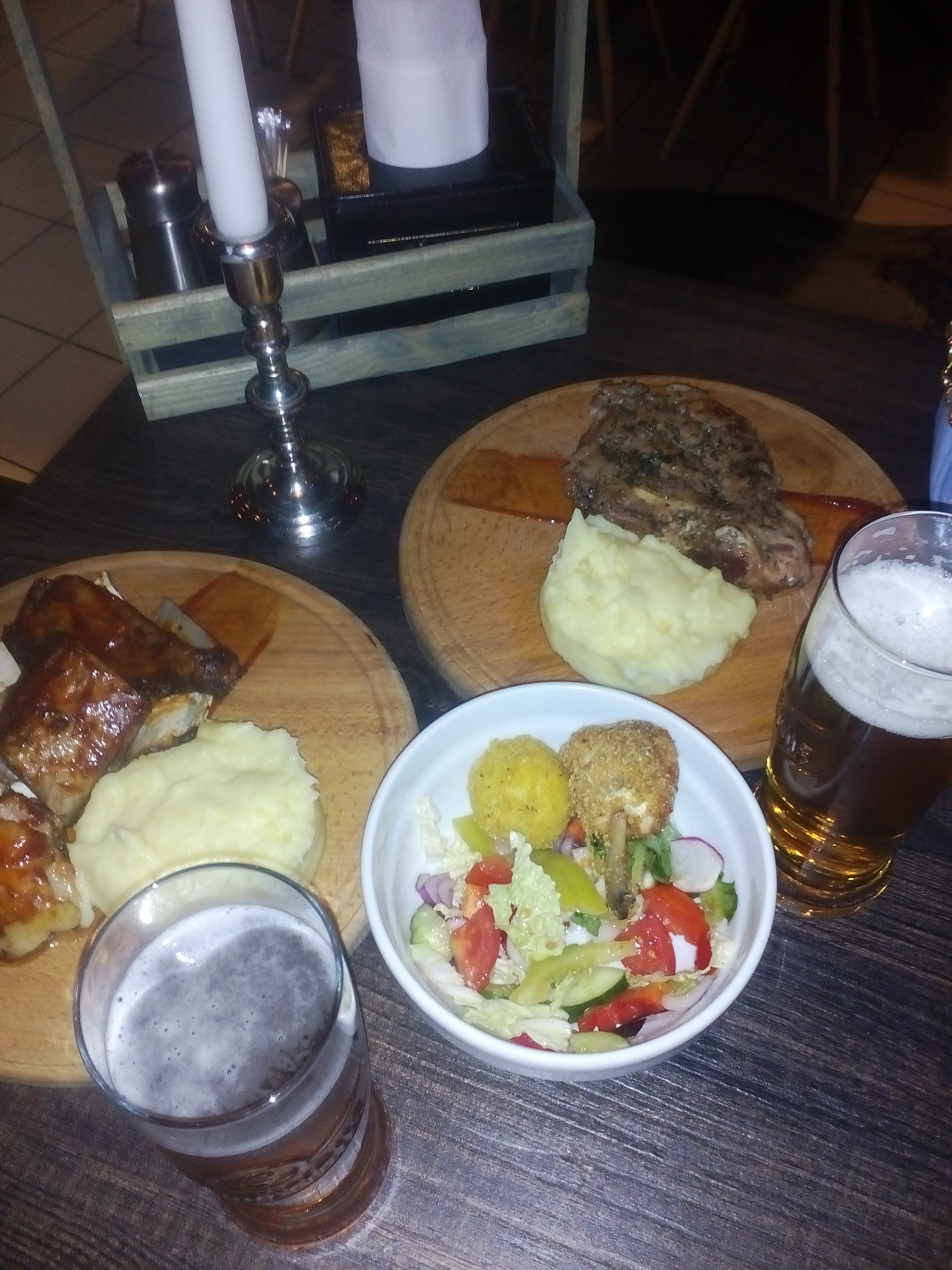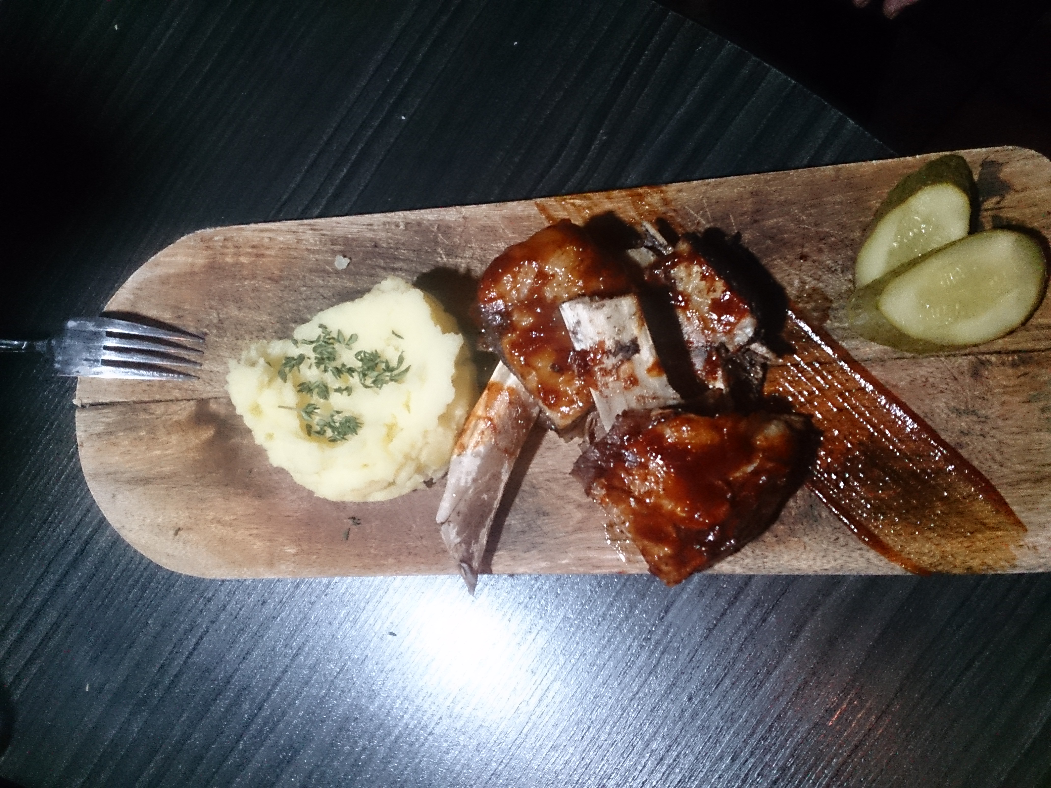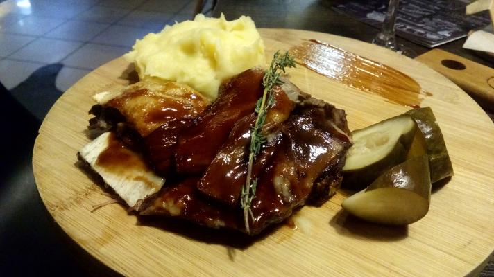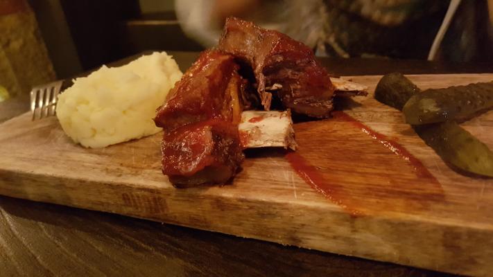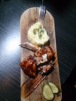 не понравилось. кусок мяса, пюре и овощной салат вкусные, остальное - на любителя. ребра не жареные, а тушеные и в жестких пленках. может мы сидели "не на тех местах", но кондиционер подкачал, очень дуло. в целом обстановка нормальная, но туда больше не пойдем.