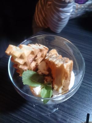 В общем, у меня ассоциируется это кафе с восхитительными десертами, вкусным кофе, бургерами на вафлях и коктейлями.