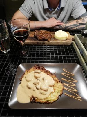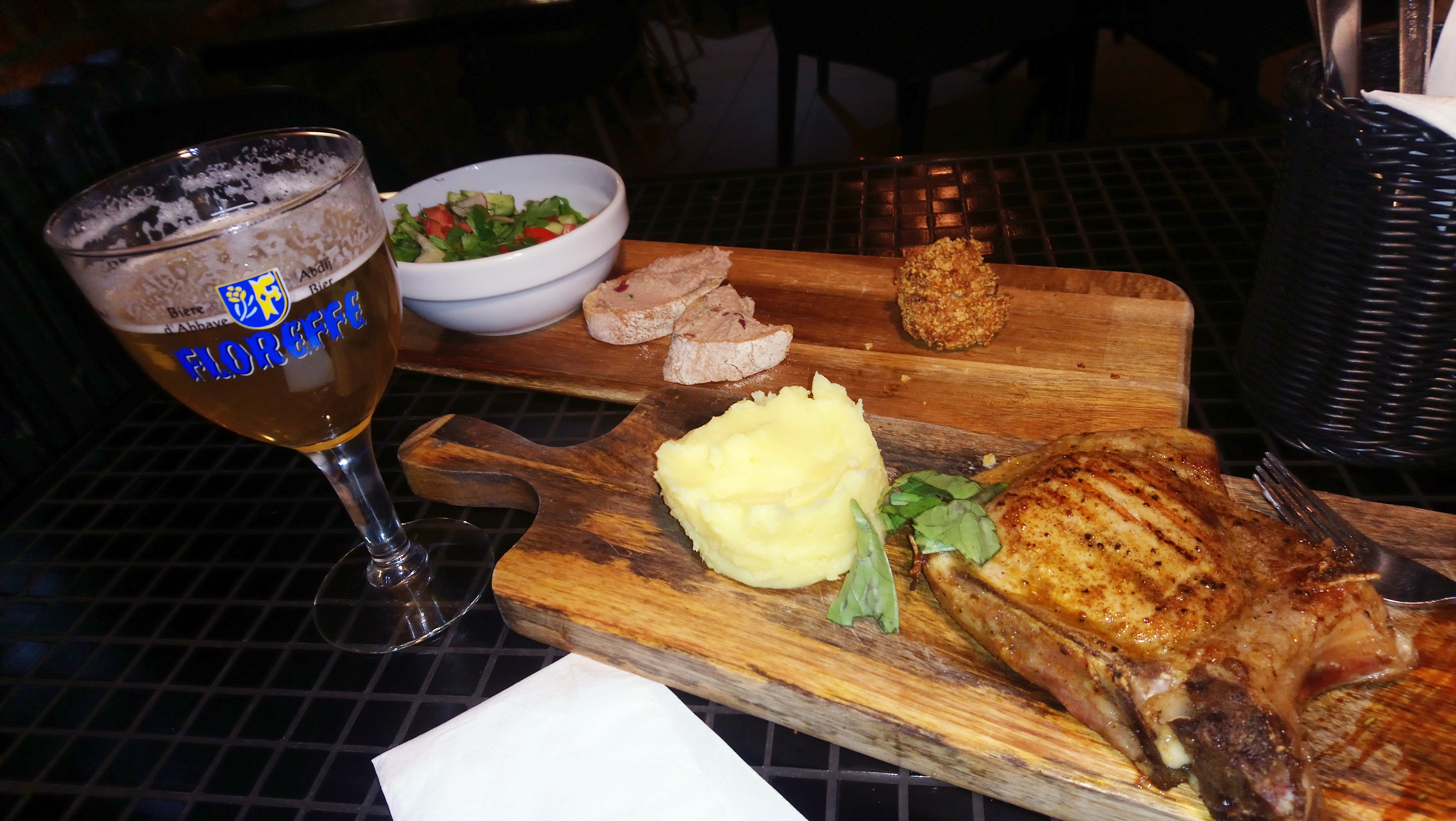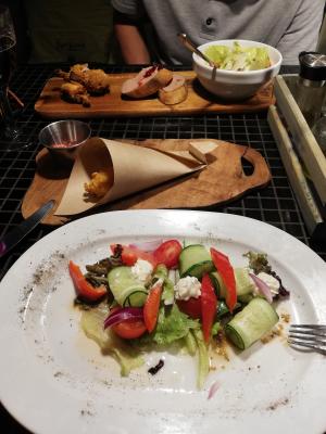 Думала, что будет какой-то подвох, предложат одно мясное блюдо на выбор, например) но нет) принесли кучу вкуснейшей еды) салат казался простым, но оказался на удивление вкусным, хлеб я не ем, но бутики с нежнейшим паштетом - супер, хлеб очень вкусный. Гдето писали, что мясо не с гриля, а со сковородки, наверное, это так, но мясо очень сочное и нежное. Все по меню понравилось.